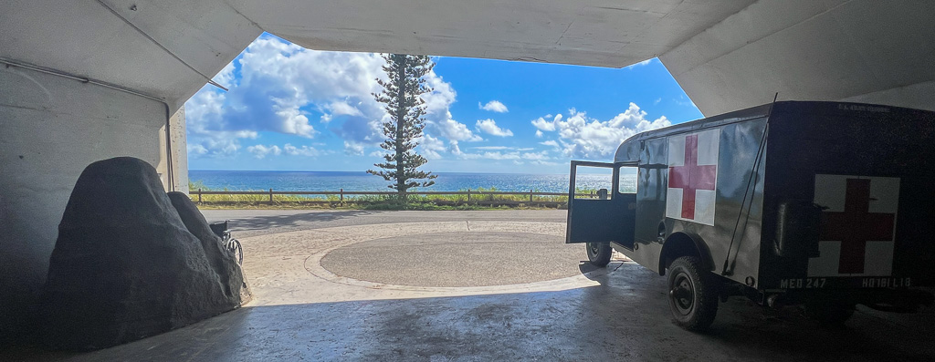The first stopping point was a bunker from WW2. It was built in 1943 to help protect the island from any future attack, but the attack had already happened (Pearl Harbor) and there would be no more. The area had hosted an airfield and had been run by the government, though it was handed back to the ranchers after the war. Originally established by missionaries, the ranch tried sugar cane at first in the 1800s, but the soil and the salt from the sea were not conducive, so they switched to cattle farming, which it still does today.