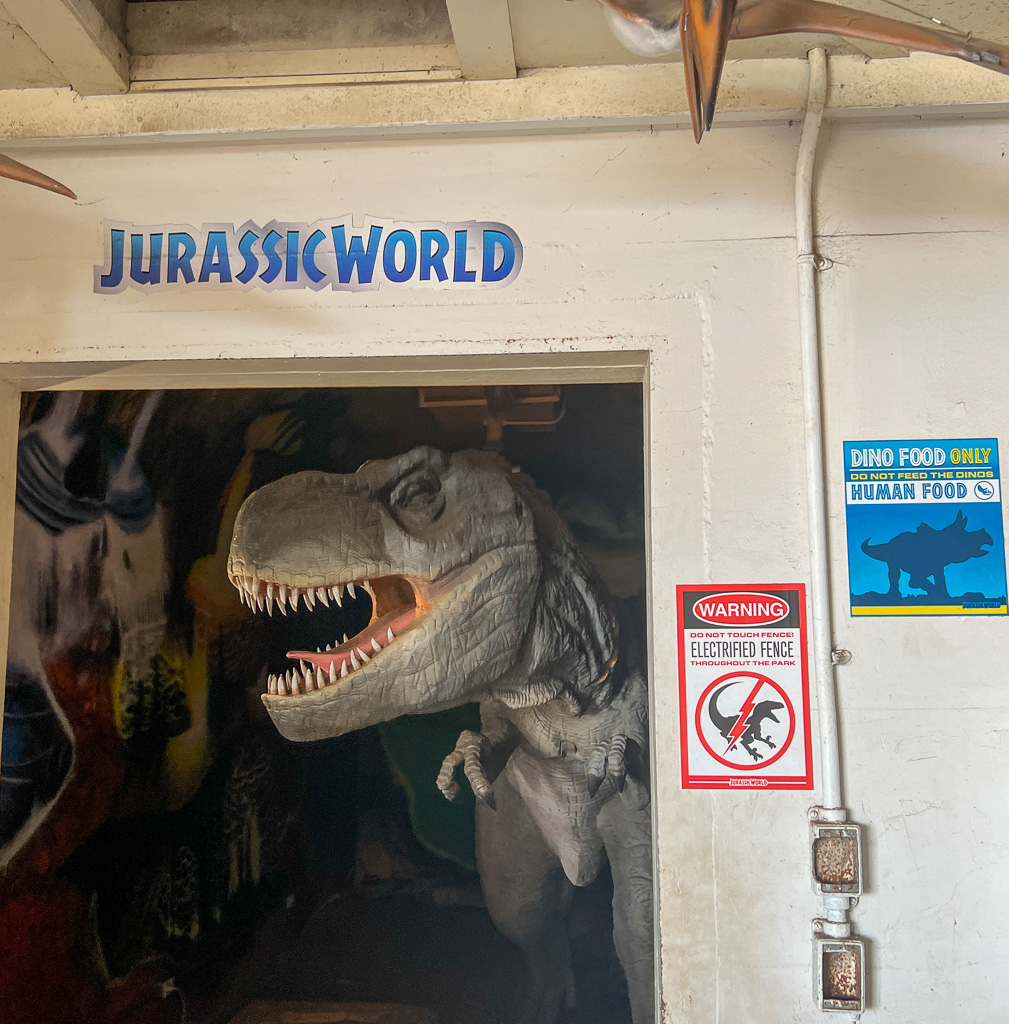 Inside the bunker, various rooms showcased different movies and shows. Some of the show “Lost” had been filmed inside this or other bunkers, and a few props had been left behind. There was also a Jurassic World exhibit.