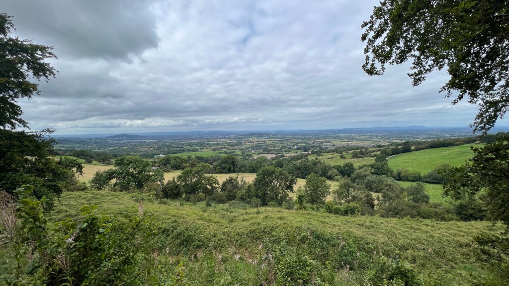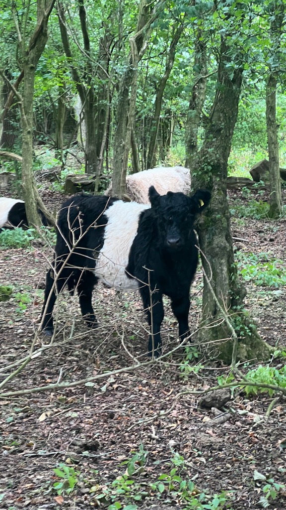 Ullenwood also marked our 11 mile mark, and our original plan. We could try to call for a taxi, or walk a couple of miles to catch a bus from Shurdington. Or, keep going. Cooper’s Hill is on the Way and close to a bus route that was operating. An optimistic estimate put it at 5 miles away, so we thought we’d keep going. Once again, the views opened up magnificently. Then, we were treated with some baby Oreo cows! Yes, I know I should call them Belted Galloways that are especially good for chocolate milk….