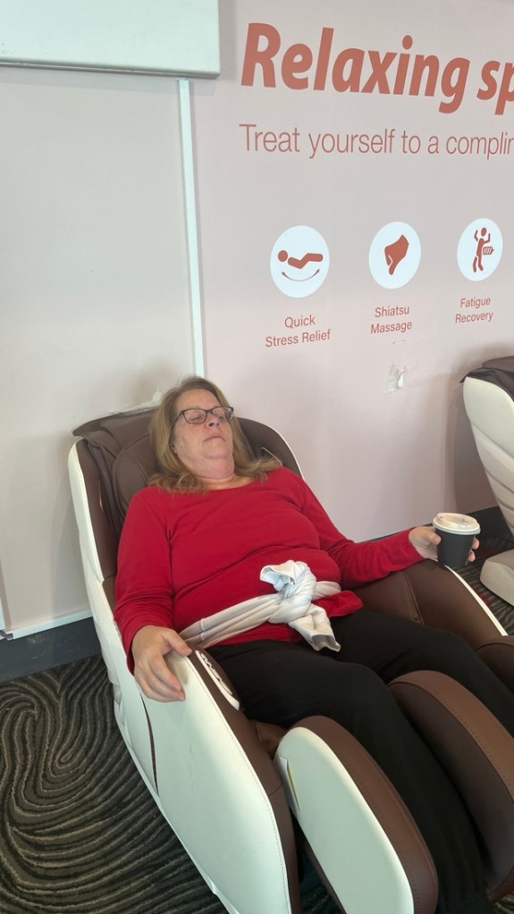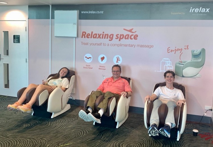 Passport control was very quick, though the biosecurity was serious and we wanted to ensure we answered all of the questions correctly. But we had no issues, so next was our transit bus to the domestic terminal, where we all made the most of free massage chairs, after we’d been able to change to an earlier flight but still had time to spare.