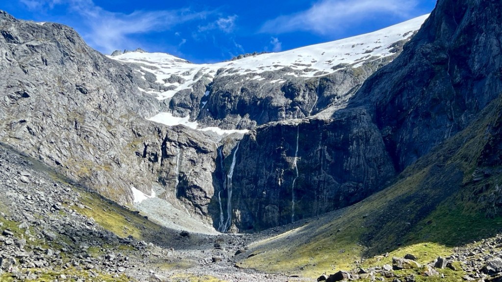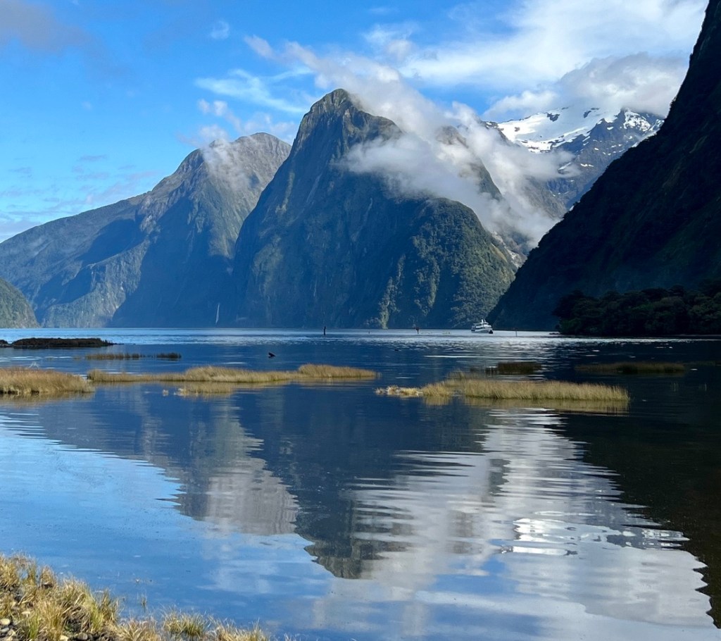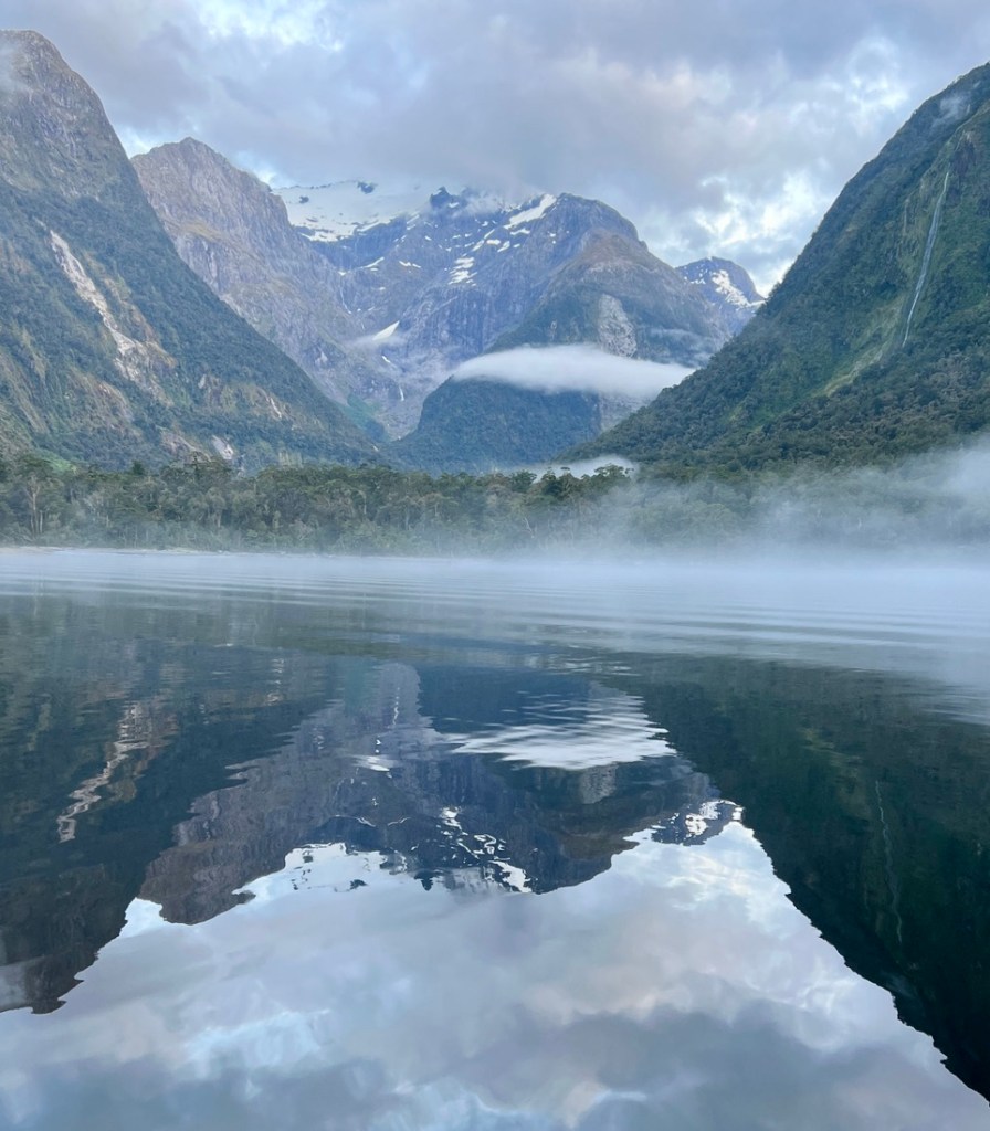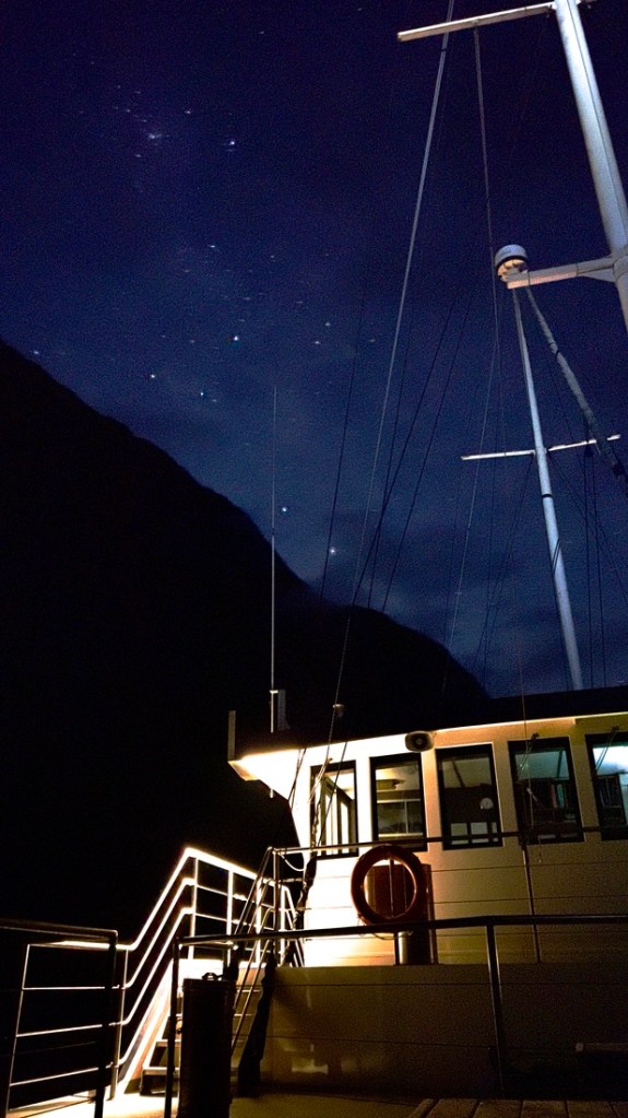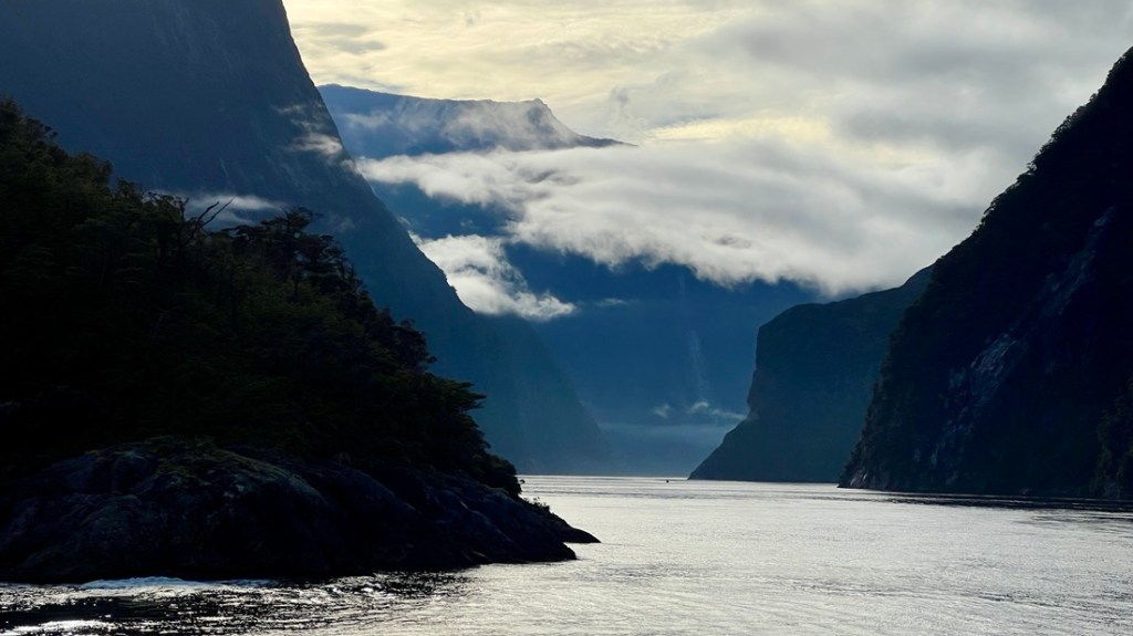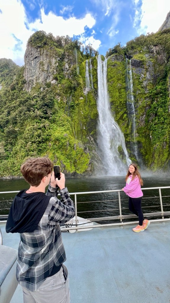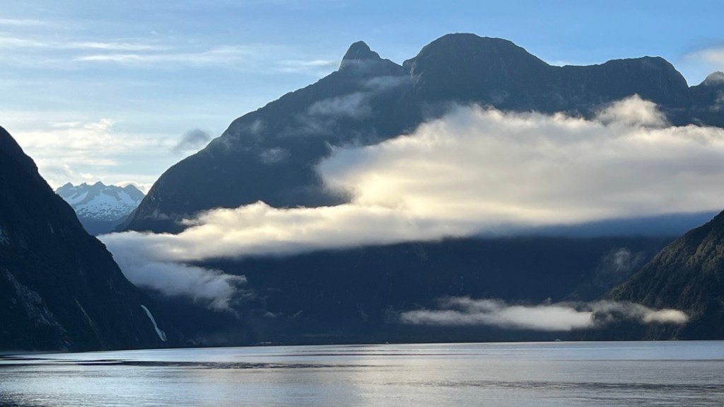 At 9am, we were back at the dock which is right next to the Bowen waterfall. After heavy rain, the dock is shrouded in the waterfall’s mist.