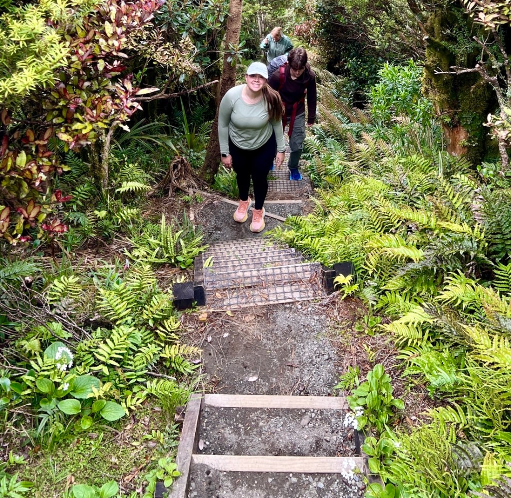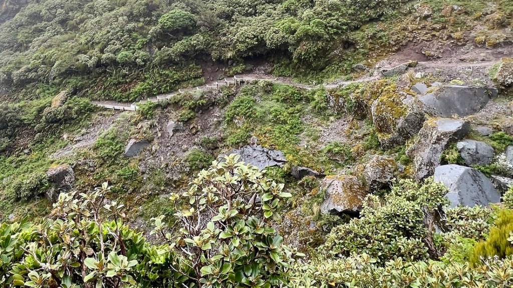 After returning and finding Janet and Bailey sheltering in the hut, we finished off the food and headed down the three miles of continuous steps. Yup, three miles continuous downhill.