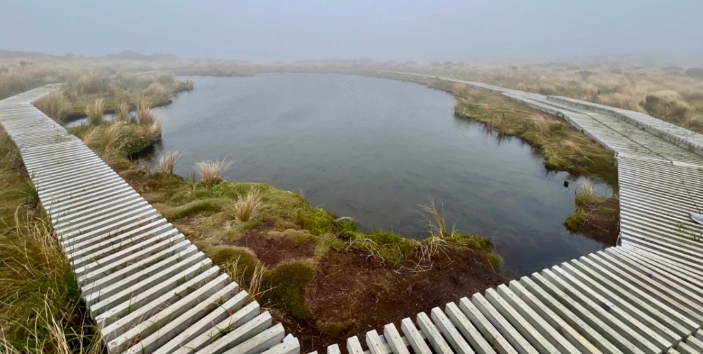 Reflecting on the hike, while it was the limit of our comfort at 12 miles and 3000 fr elevation change, we’ve done that before and enjoyed it. The lack of view was a bit of a downer, but the biggest issue was the steps. I’d expected a few, but maybe 80% of the whole trail is steps or boardwalk. The wood is hard and has gaps so is not kind to the feet, and we had a few stumbles. I guess the NZ government is trying to protect the trail, but we were not the only ones finding them horrific. We cannot recommend walking the Pouaki crossing, though Samuel would go back to the tarn in a heartbeat to get THE photo.