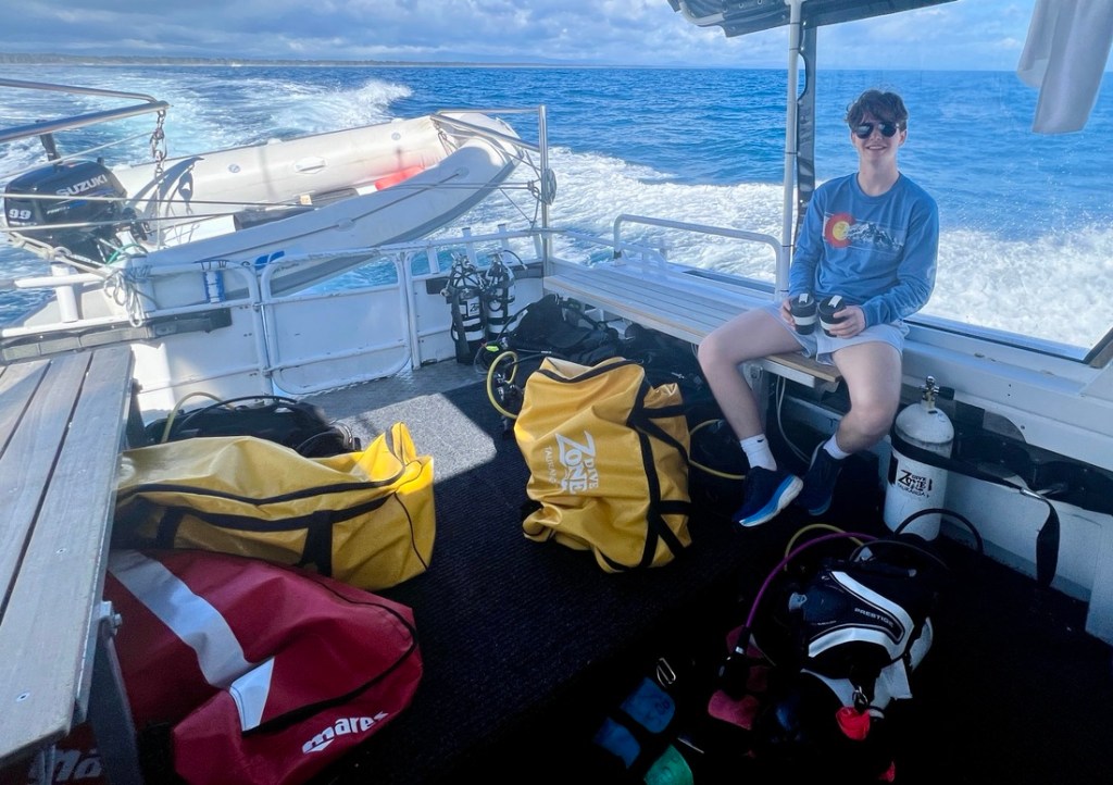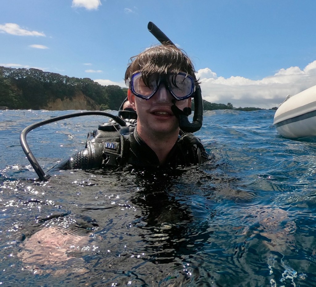 Our hectic schedule was making all of us pretty tired but Samuel and I had one more day of adventure booked: diving. I’d booked a day with Dive Zone in Tauranga without knowing much more about what we’d do. Samuel’s priority was to see different things, and we certainly did that. I hadn’t thought about how the 8am start in Tauranga meant leaving Rotorua at 7am so getting up even earlier. Ho hum!