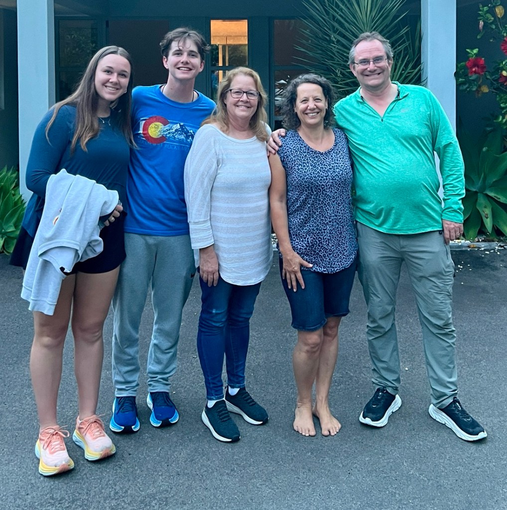 After the dive, we headed to the house of a great friend of mine from college/university, Vicky. Janet and Bailey took an Uber from Rotorua, with the ride along the roads a bit hair raising. It was such fun catching up with Vicky and seeing how they lived in New Zealand and hearing what their boys were up to. Janet particularly loved all the fruit they grow in their garden, and our kids particularly liked the chicken curry and fruit cheesecake. They’d moved here from Bermuda, where I also visited her – we love to visit people in interesting places. It was odd to think we had met when we were the age of our kids.