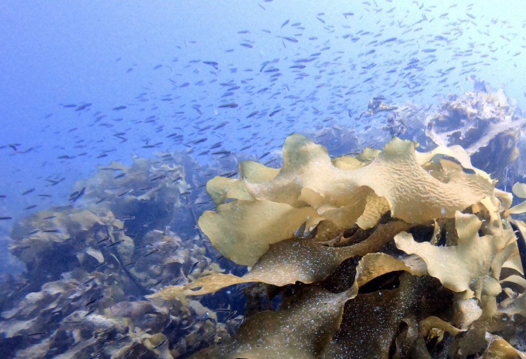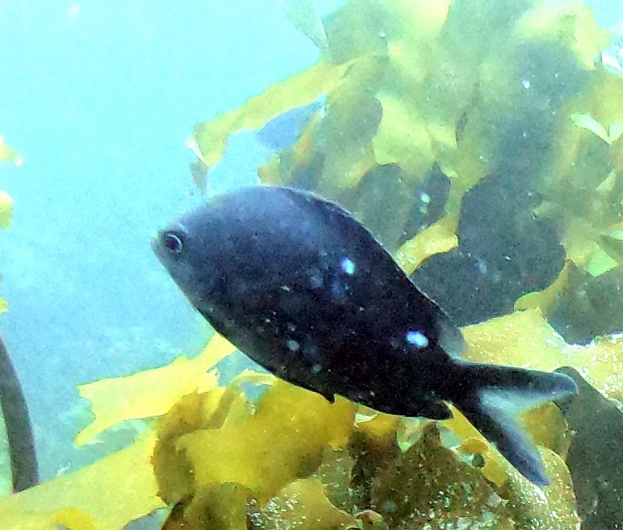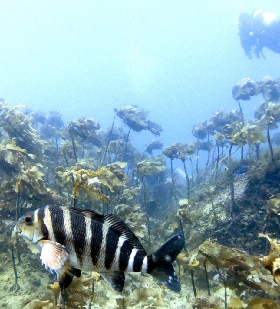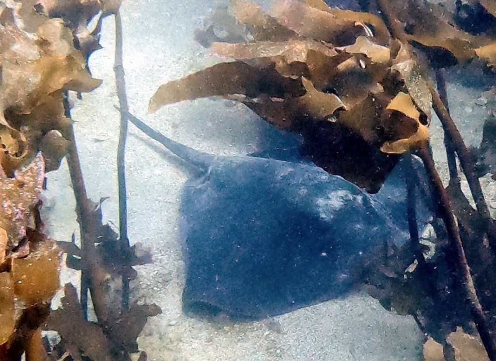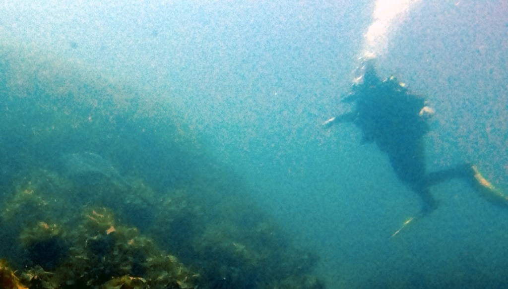 It was lying on the bottom in kelp, which was also new to Samuel and fun for both of us to swim amongst.