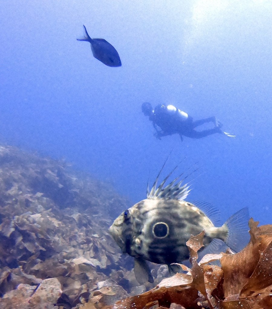 Toward the end of the first dive, I spotted a puffer fish. They are new to these parts, probably arriving due to increased sea temperatures.