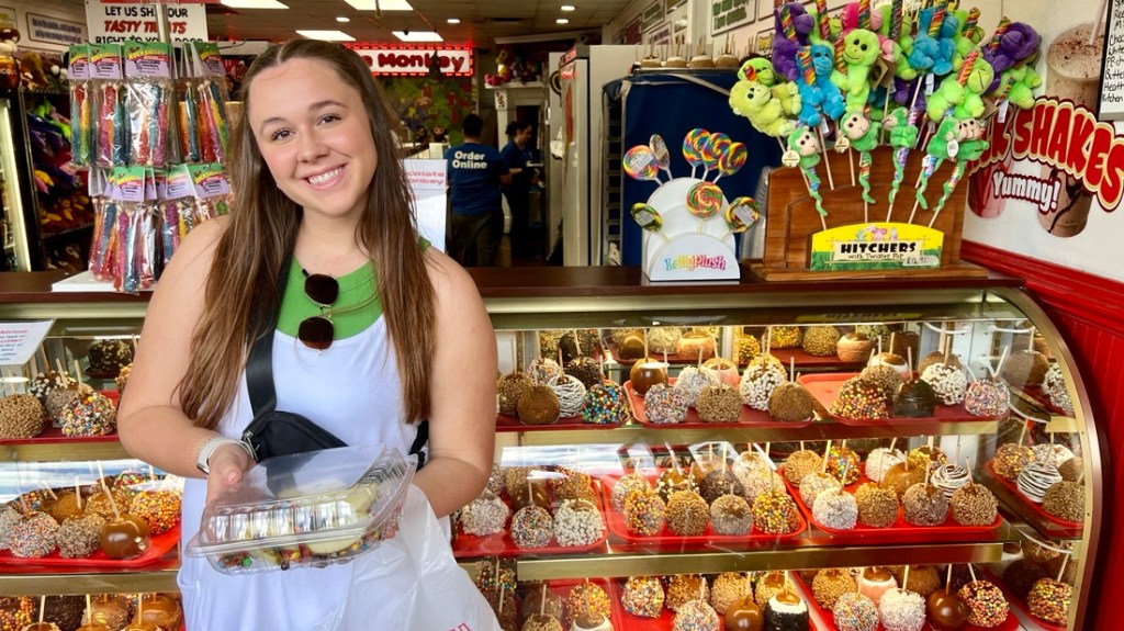 Bailey’s focus was her M&M covered caramel apple, which the shop kindly cut up so we could all enjoy.