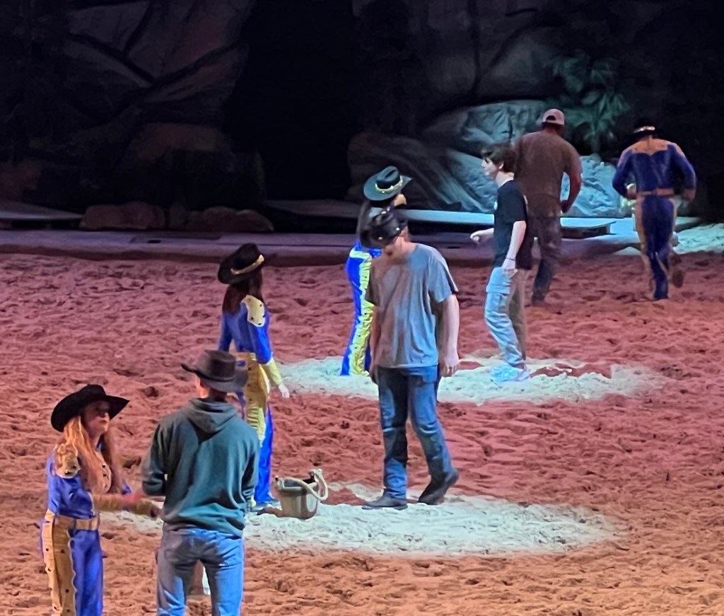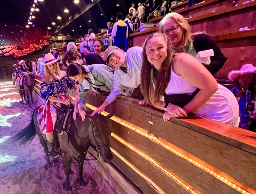 Next up was Dolly Parton’s Stampede. We all agreed it was an excellent display of horsemanship with a large and tasty meal which included a whole chicken. The fun was amplified by Samuel’s performance in one of the team competitions, after Kylie and Jett volunteered him.