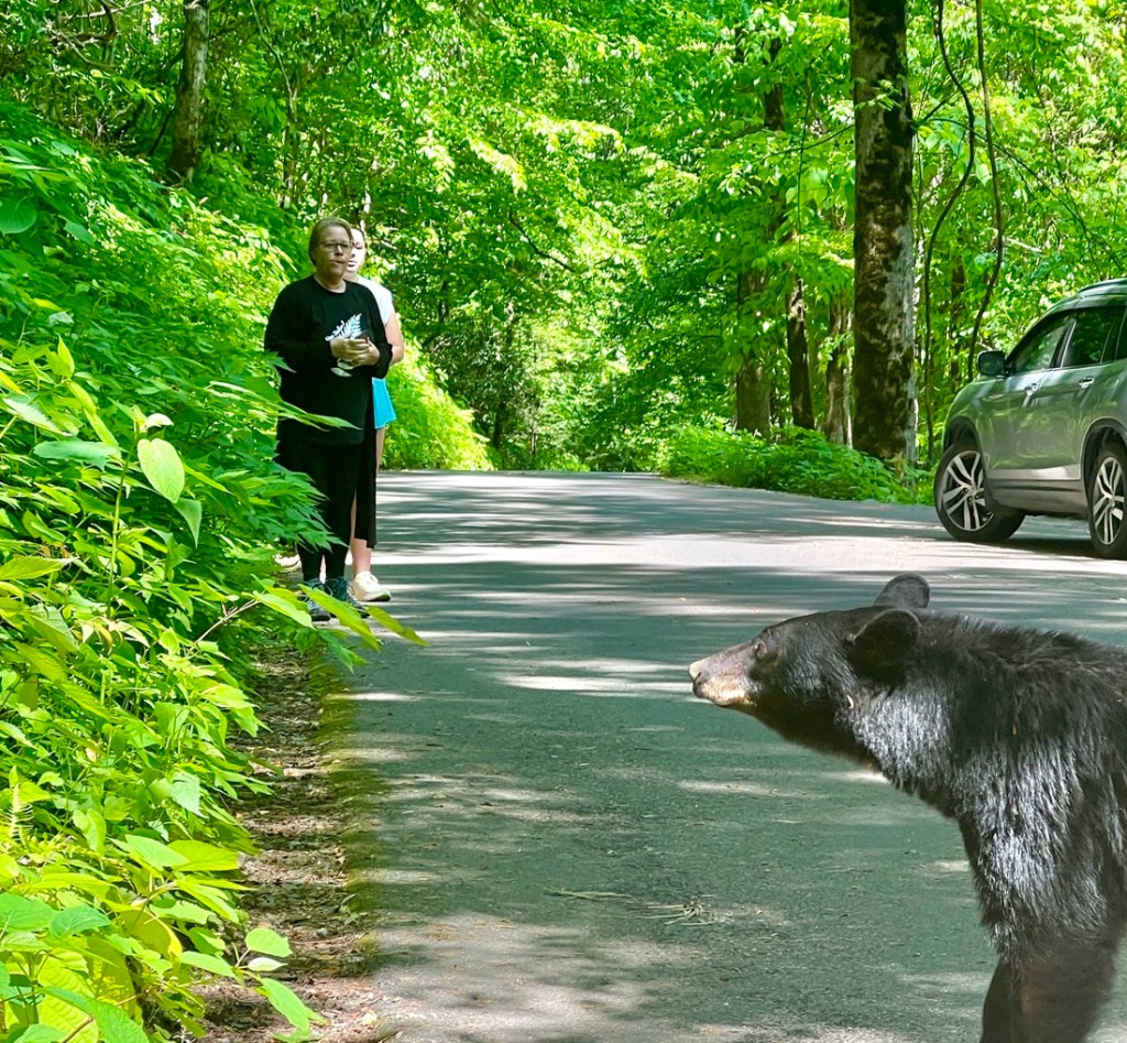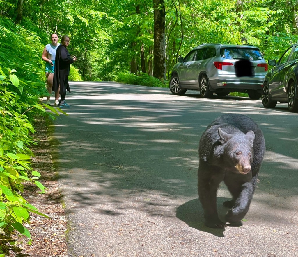 The next stop was the trailhead for Grotto Falls. We found a parking spot but then realized it was about a mile from the trailhead. So we drove to the trailhead but there was no parking…. We might come back earlier another day. We kept driving along the Roaring Fork Driving Loop, to a place we could stop by some cabins.