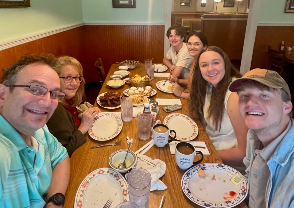 After checking out of our AirbnB, we grabbed breakfast in Pigeon Forge. Research led us to Mama’s Farmhouse for breakfast. The reviews were good and we arrived when it opened at 8am, but we had missed that it was an all-you-can-eat place, which we normally avoid. They had an extensive menu and explained that they bring out everything on it! It worked well and we all tried most things, setting us up well for our 3.5 hour drive to Nashville.