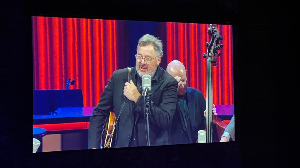 Each act was introduced by Charlie Mattos, who briefly interviewed each of the stars. Charlie also announced the sponsors and associated adverts.Next up was Julia Cole from HoustonWhitey Morgan and The 78’s made their first performance on this stage. Charles Esten gave an excellent performance. You might recognize him as the evil father from The Outer Banks TV show.Connie Smith, another 83-year-old, has been a Grand Ole Opry member since 1965.Gray Mule Deer had all of us laughing out loud. He was very funny.Grammy Award winners Old Crow Medicine Show played some hillbilly music.The CEO of Sony Music presented Ketch Secor with this award to commemorate 25 years since he wrote Wagon Wheel, building on a chorus by Bob Dylan. The band finished their set with the number which has sold over 16 million copies and has been listened to on the radio more than 4 billion times!Vince Gill closed out the evening with some bluegrass numbers which he dedicated to a friend who had recently died. While Janet knew him for country music, he would soon be heading to Manchester for a show with The Eagles, which he has been a part of since 2017.