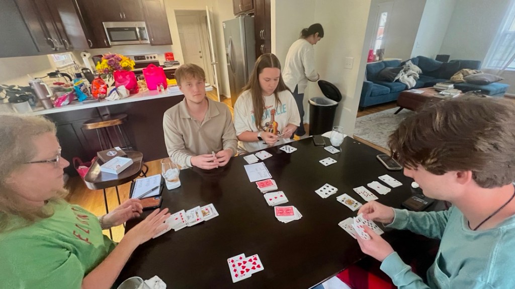 Kylie and Samuel had dinner duty and made fine shrimp tacos in between playing cards.