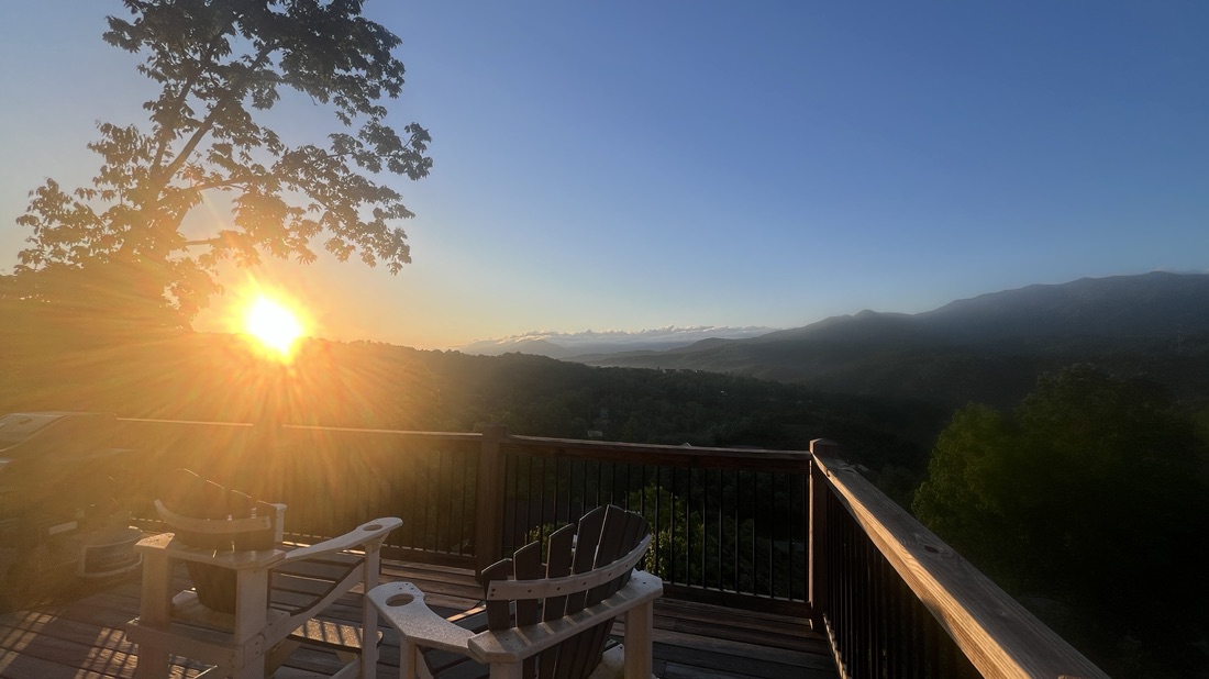 Day 2. 11 May: Birds, Anakeesta, and Bears. Enjoyed the deck again, especially the birds; spent the morning at Anakeesta; I grilled steaks for dinner which brought the neighborhood black bear to come begging at our deck! Returned to Anakeesta for sunset and to the Treetop Skywalk in the twilight.