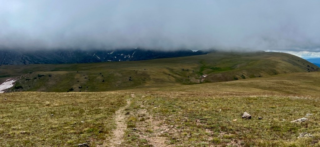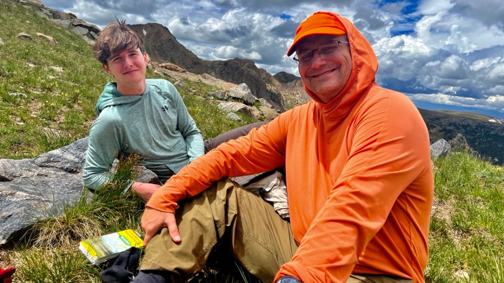 Most of this hike is between 10,000 and 12,000 ft so appropriate altitude sickness precautions are advised. These are personal. Martin, living at 10,000 ft in Breckenridge, had no issues. Samuel and I had driven up from sea level and spent 2 nights in Golden at about 5,800 ft with one hike up to 6,200 ft. From previous experiences, we know that Samuel handles the altitude well whereas I have struggled, and I take Diamox which works very well, though I have noticed the side-effect of pins-and-needles in my fingers. Samuel’s hands tend to get cold, and we are starting to think he has Raynaud’s syndrome. Even though the temperature did not drop below 40 degrees, there was a real risk of hypothermia.