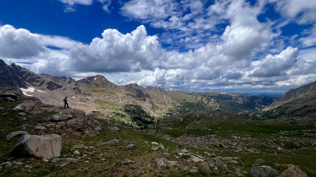 This is my favorite photo of the trip. It shows the vastness of the sky with the lone hiker for scale. This was the furthest we walked from civilization and going off trail had been so worth it.