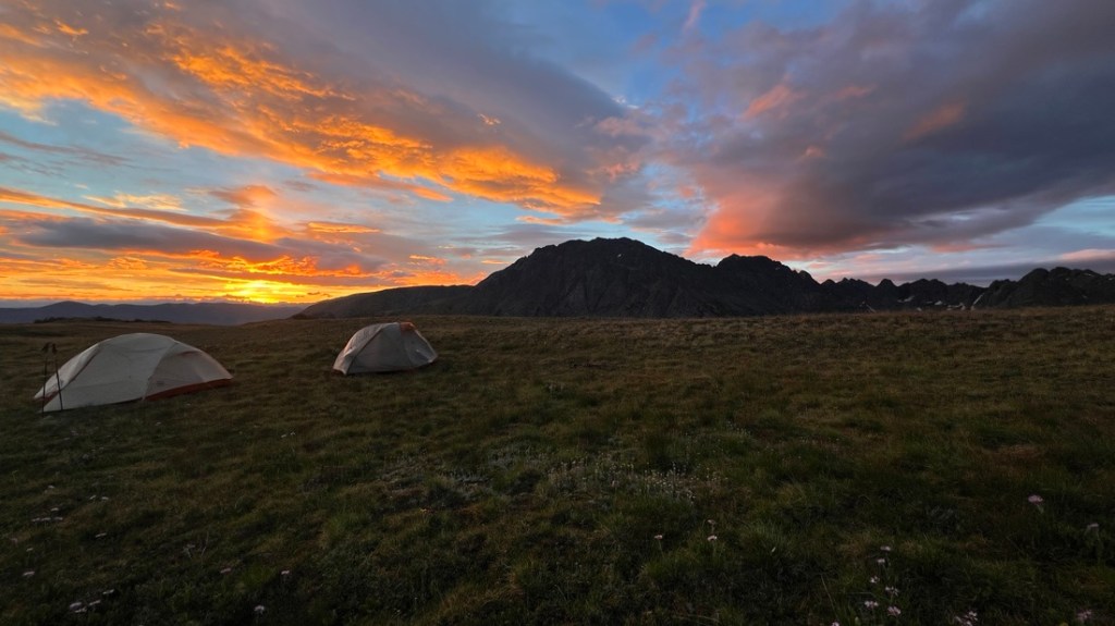 The campsite was a bit exposed but the views were great. The saddle from earlier in the day is in the back of this picture.