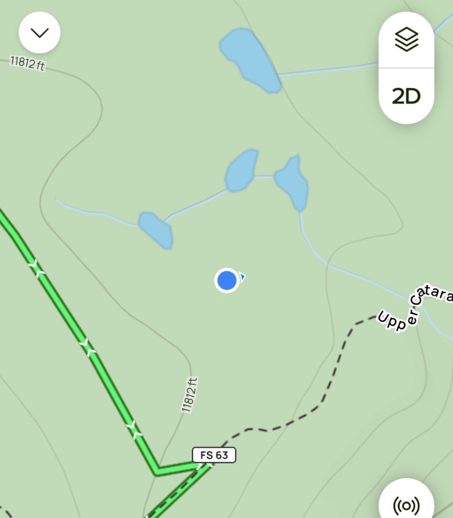 We had a couple of minor navigation issues. First, when passing Upper Cataract Lake, the onward path is not clearly signed. There is a junction showing Upper Cataract Lake to the left and Cat Lake to the right. We went left and lost the main trail for a bit. Second, we struggled a bit to find the lakes just below Elliott’s Ridge. We found some dried-up lakes and were briefly worried. Finally, while not an issue, we chose to cross Cataract Creek at the outflow from Mirror Lake (which was fine), rather than downstream where the maps show FS63 crossing it. For all of these, having a previously downloaded map on a GPS-enabled phone showed where we were, complementing the paper maps. Different apps have their own strengths, and I used CalTopo, AllTrails, and CoTrex offline maps and satellite imagery, having downloaded them before setting out.