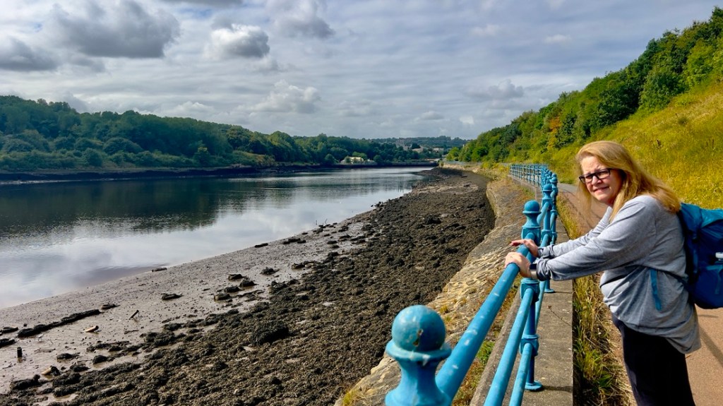 The path heads downhill and soon we are walking along the banks of the River Tyne: