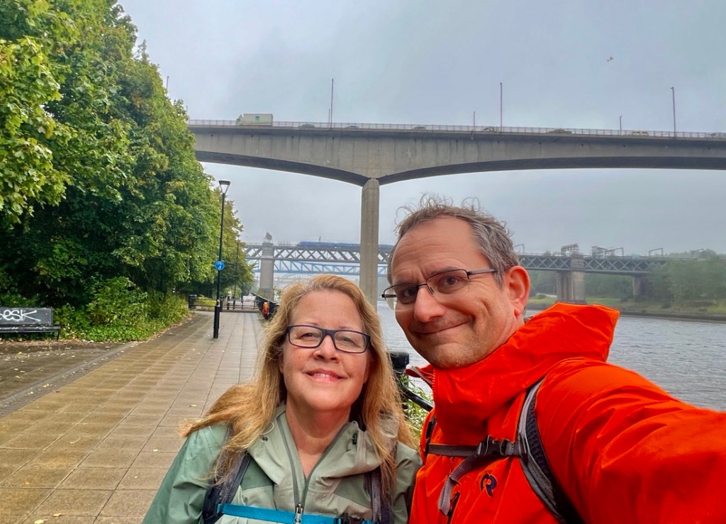 The lack of wall on today’s stretch is replaced by a journey through time. The Romans started building the wall in 122 and they left Britannia in about 410 when Barbarians were attacking Rome. The church in Heddon dates from 650. Newcastle castle goes back to 1080. The friars at last night’s restaurant established their friary in 1239, lasting three centuries before Henry VIII kicked them out in 1539. We passed through Newburn, where there used to be a ford across the River Tyne and is the site of a battle between the English and the Scots in 1640. We also passed by the site of the former Tyneside Ironworks which opened in 1797 and led to a thriving shipbuilding industry. Our trail went next to the house where George Stephenson, the father of railways, was born in 1781. We passed the former site of one shipyard at Elswick, which built the entire Japanese Navy between 1895 and 1905 for the Russo-Japanese war. One memorial commemorated 38 men and boys who died in a coal mining disaster in 1925 in Scotswood while another remembered the lives lost in the two world wars.