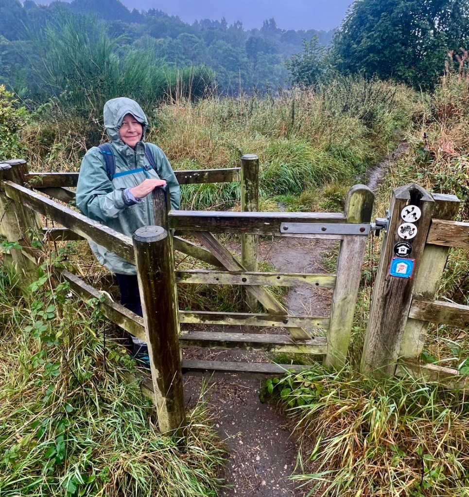 After about 8 miles, which is about 15 miles of HWP from Wallsend, we finally started walking on a dirt path and our joints were happy. The path was narrow at times as it hugged the river’s banks and the long grass and trees made us wet, but we were happy to be hiking in the country again. We celebrated our first kissing gate, and the sign that announced that we were on Hadrian’s Wall Path, rather than Hadrian’s Way. The path was called the Way through Newcastle as the path shared the route with the bike trail.