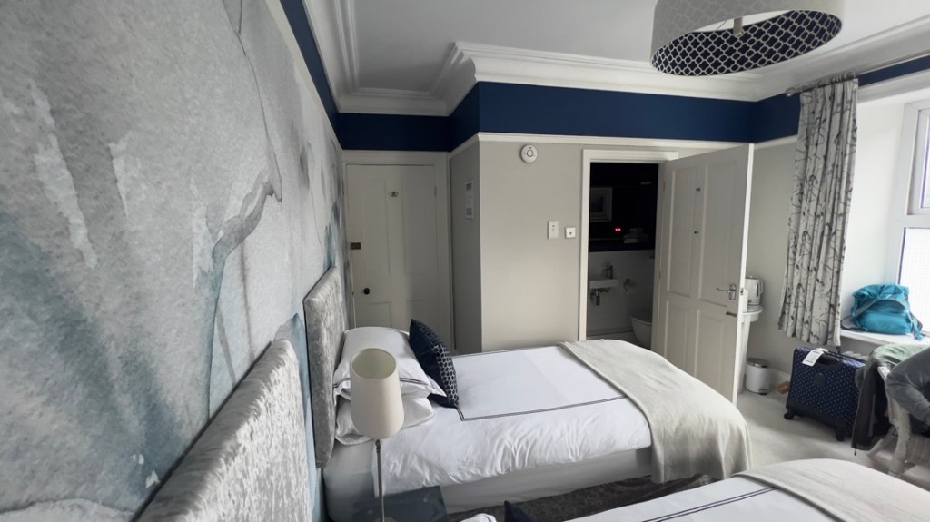We are staying at the Wormald B&B, which was built by a local colliery manager in 1888. It had a butcher shop until 1990 and had its own small slaughterhouse. While maintaining the external facade, the renovators have done very well to squeeze an en suite bathroom into the guest rooms.