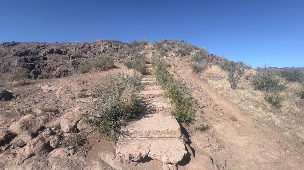 I started at the Shoshonite Trailhead which has plenty of parking and is behind Faith Lutheran Church’s aptly named South Table Mountain Preschool. The trailhead includes an information board and there were some pamphlets you could grab when I went. It’s between 2 and 2.5 miles one-way from here to Castle Rock.