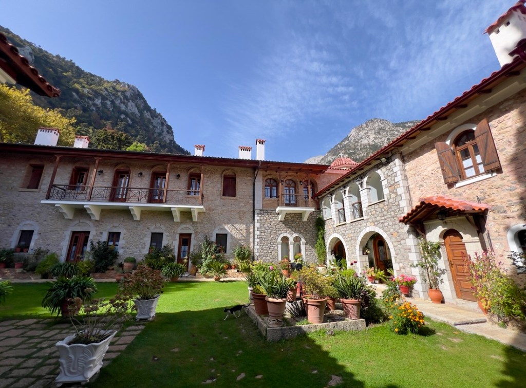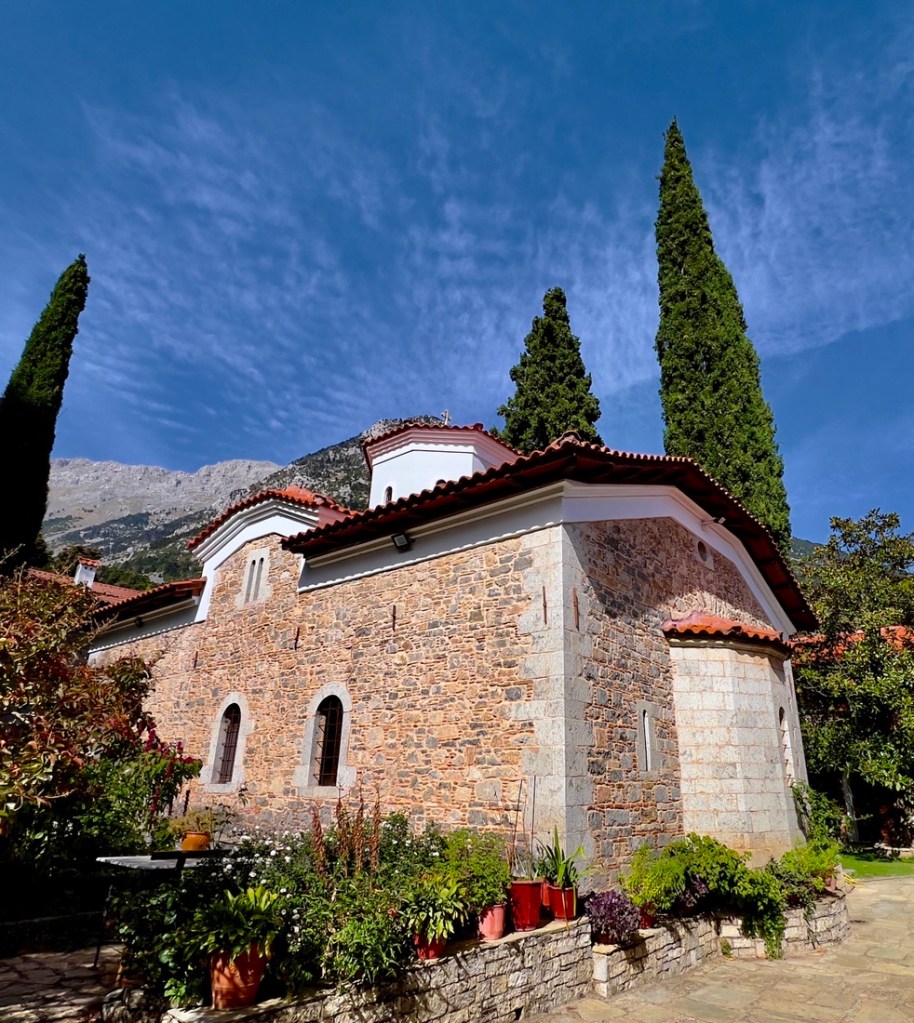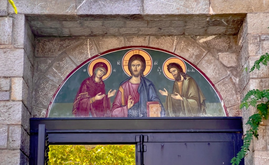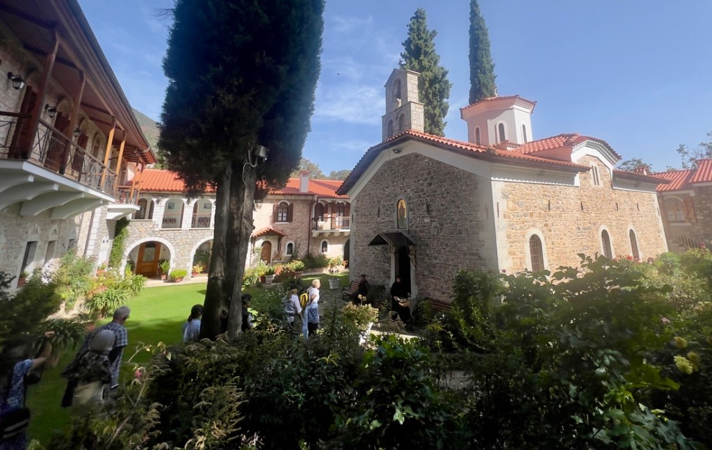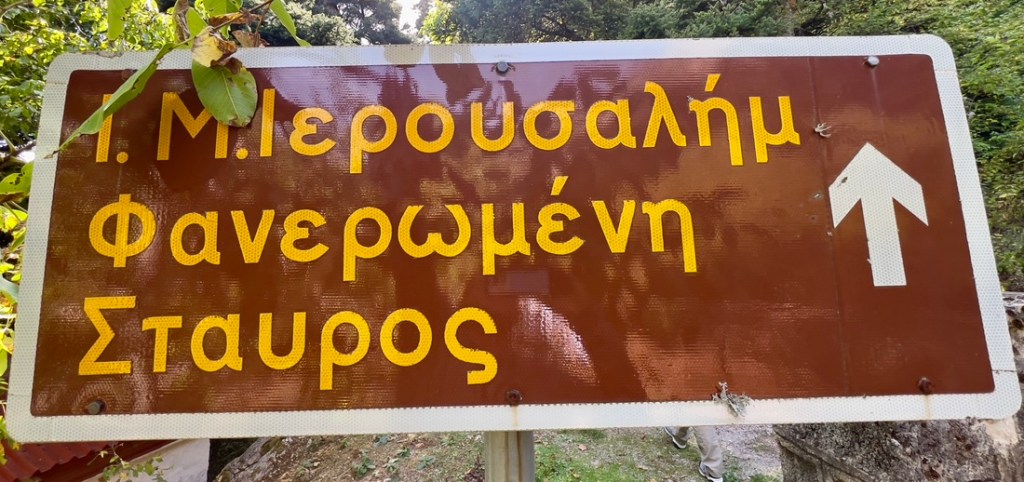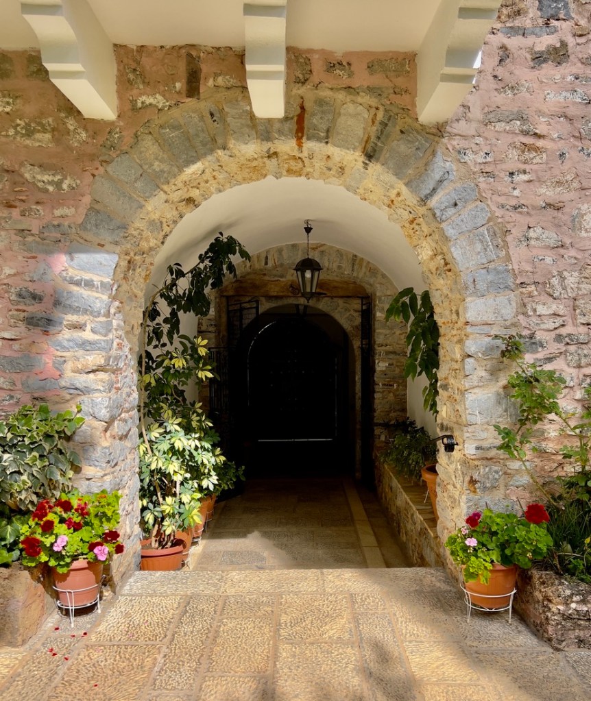 The first was the Holy Jerusalem Monastery, originally built around 1100 but destroyed by the Turks and rebuilt around 1700. The nuns showed us their church which was filled with icons, but we could not take photos inside. They gave us cookies to welcome us! Our guide Marianna provided details. We looked around their beautiful courtyard and enjoyed the views into the valley. It was fascinating to gain some insight into the Greek Orthodox religion, which has some similarities with Roman Catholicism while also having some significant differences after it developed different traditions after the Great Schism of the church in 1054.