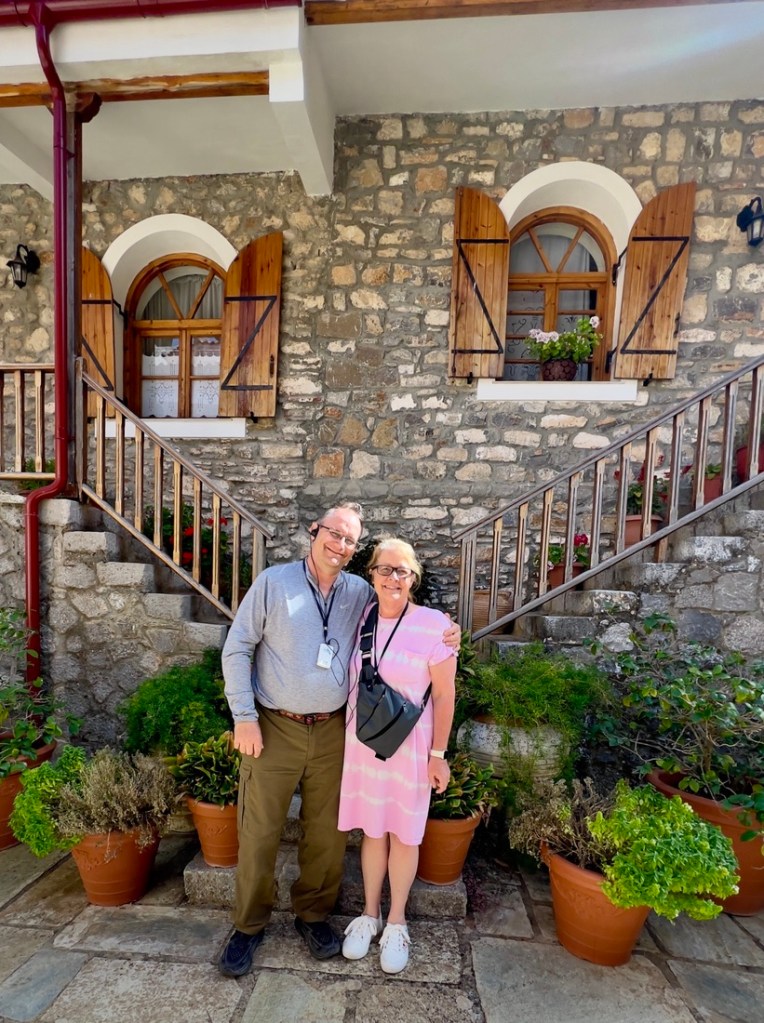 It’s been a great start to the trip. The logistics have worked well, but we have learned that we have to manage how much we eat with the large open buffets for dinner like on a cruise ship. The hotel also plays loud music with a DJ in their very large dining which is a bit strange. Our room is directly above, but thankfully the music stops at 10:30pm. We had too much time in today’s museum for our liking, as our knowledge of Greek mythology is limited, but finding the right balance for a group is difficult. Tomorrow, we move to a new hotel and some exciting mountain top monasteries, so we look forward to the next adventure! After tomorrow, there will be greater focus on Paul as we move on to Thessaloniki, Philippi, and Corinth.