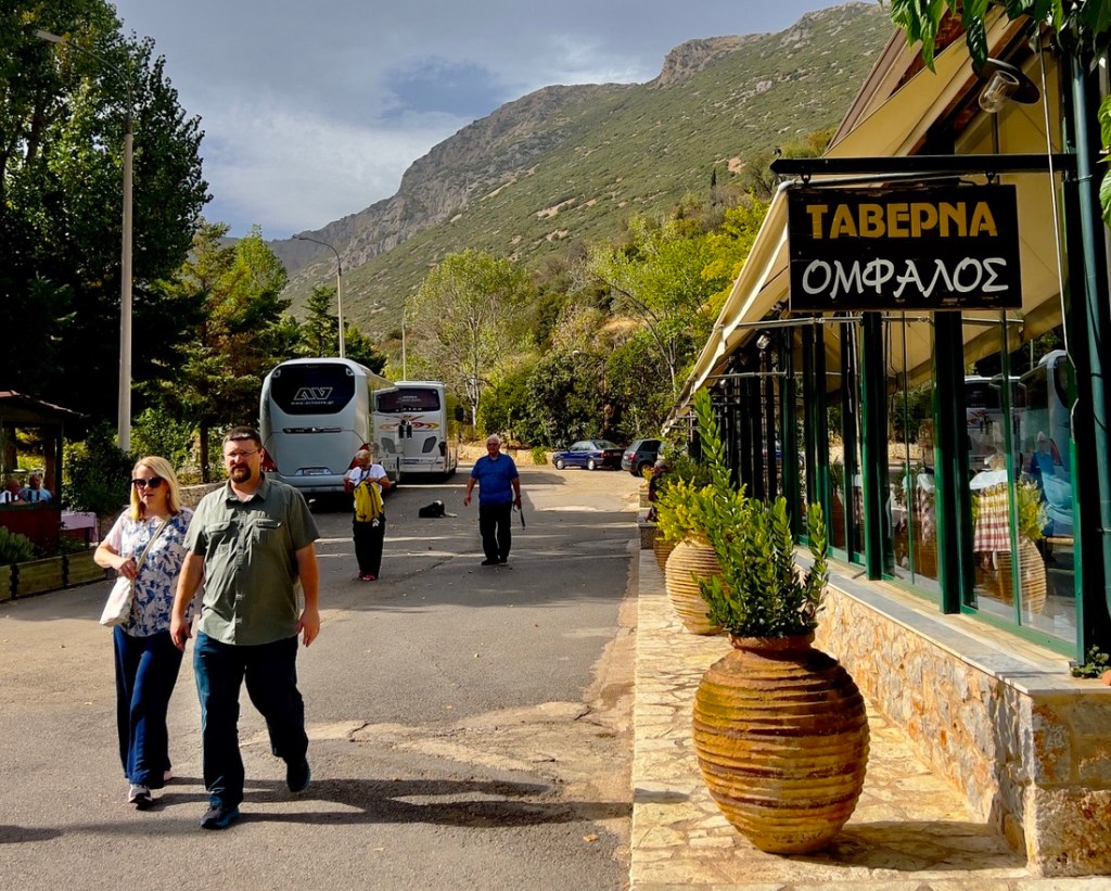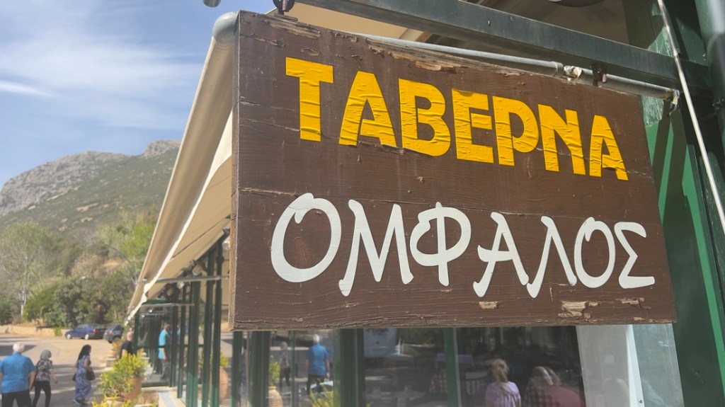 We grabbed lunch at a restaurant whose name means “navel” as Delphi is the center of the world.