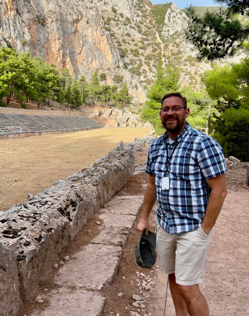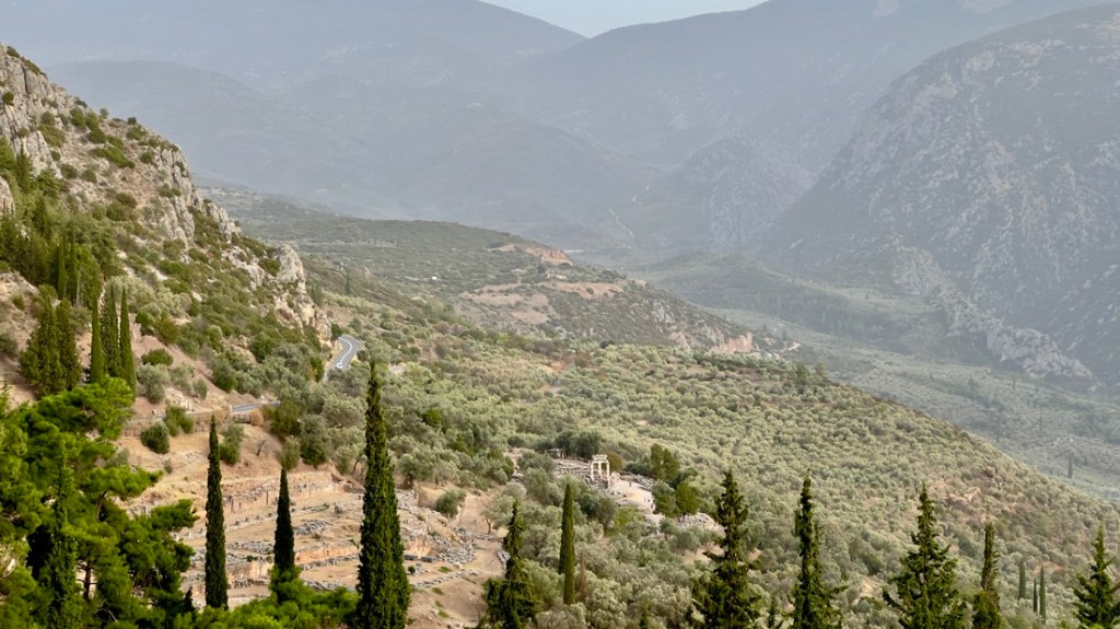 TL;DR: The Delphi Inscription helps date Paul’s time in Corinth at the end of AD51 during Gallio’s proconsulship. We got to see it in the Delphi museum where there are many other archaeological pieces close to the site of the remnants of Apollo’s Temple complex. Delphi was originally founded where Oracles would give predictions having inhaled hallucinogenic gases that escaped from fissures in the earth. This also helped us understand the “python” that is in the Greek of Acts 16:16 but not in the English translation. On the way to Delphi, we looked around the Jerusalem Domitian Monastery and its associated cave before checking out the old shepherd’s village of Arachova, which also serves as a ski town!