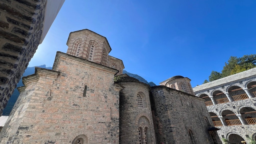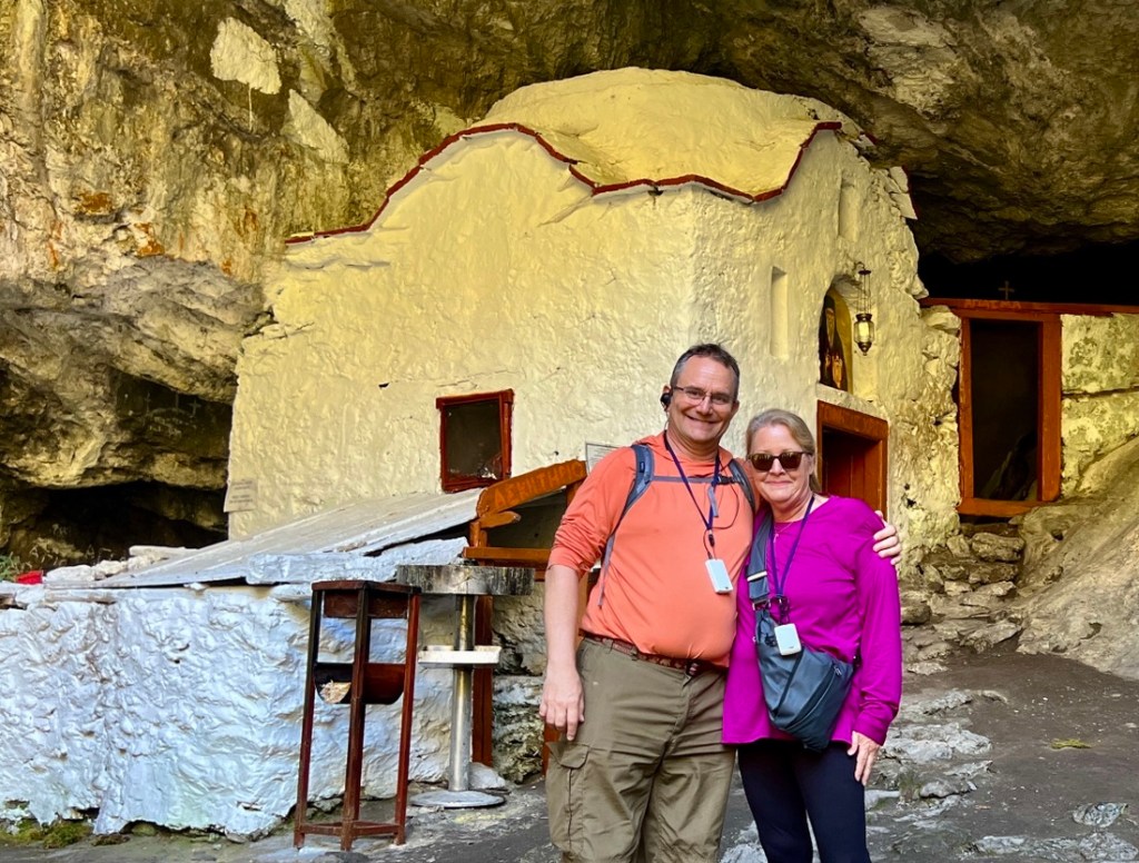 Summary: A fine hike to a monastery dating from the 16th century that is partially restored after the Nazis destroyed it in 1943, followed by a visit to a tiny church in a remote cave and a natural spring. We enjoyed some great gyros, a partially restored Roman theatre, and spent the day in Mount Olympus’s shadow. Who knew Greece was this mountainous!