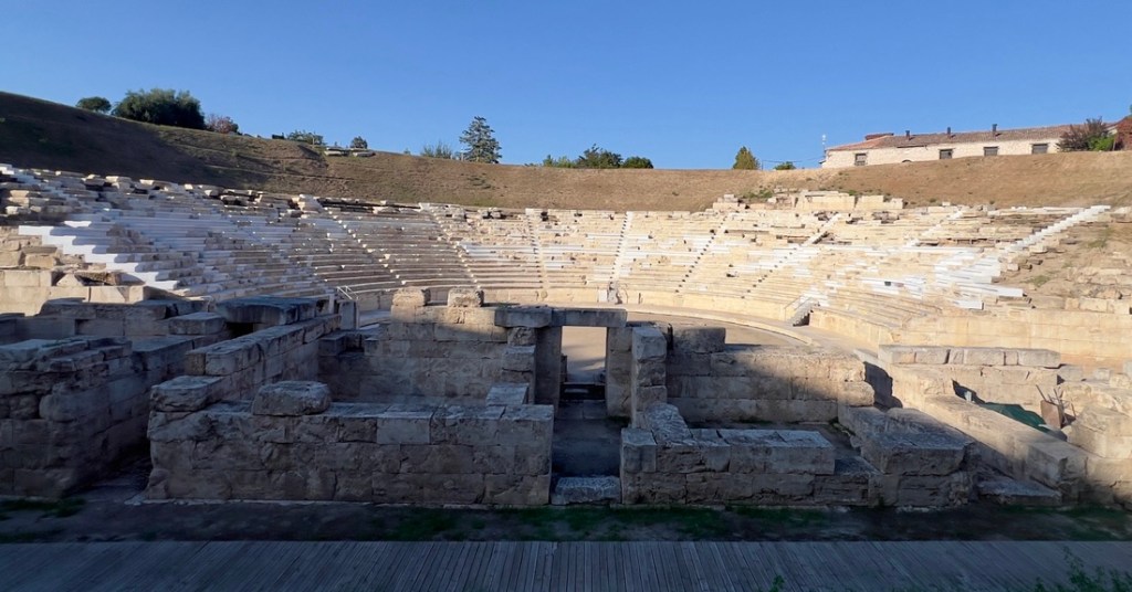 Our day’s journey ended in Larissa, but first we visited a Roman theatre. It dates from the third century BC and had a capacity of 10,000 people. Recent repairs to the seats suggest it is used for performances today.