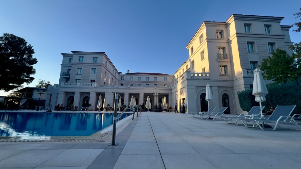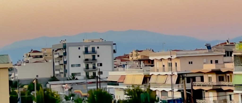 The hotel and pool. Unfortunately, the outdoor pool was closed. They had an indoor one but it was hot and noisy.Mount Olympus continues to look down upon us!