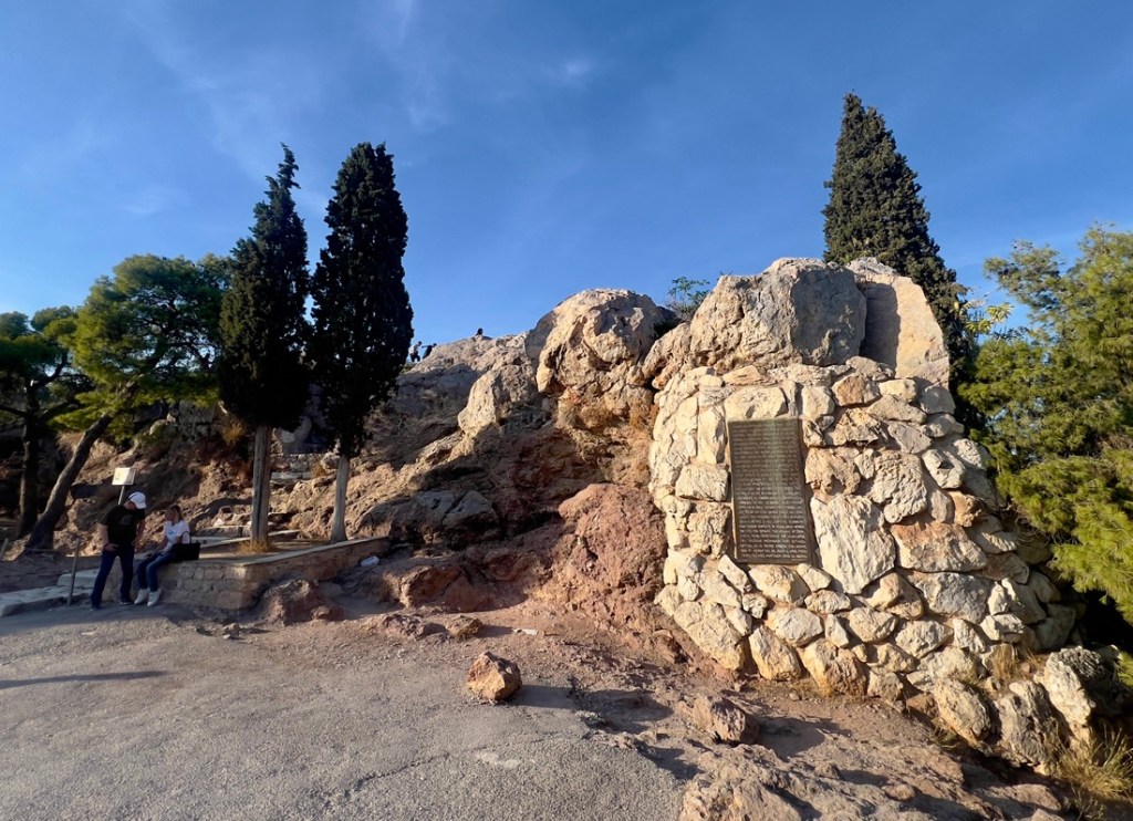 Acts 17:18 explains that the Epicureans and Stoics did not agree with Paul’s teachings. English translations say that they described him as a foolish babbler. The Greek literally means a seed-picker, referring to a bird like a pigeon that randomly pecks at seeds, as a babbler might gather or share information. Acts 17:19 says that they “took” Paul and “brought” him to the Areopagus, which might have been an invitation or by force. The Areopagus likely refers to an advisory council of Athens that met on or by Areopagus hill, called Mars in Latin. The hill is rugged and rocky, so it seems more likely that the council met at its base rather than on top. It is located between the agora and the Acropolis, overlooking the agora.