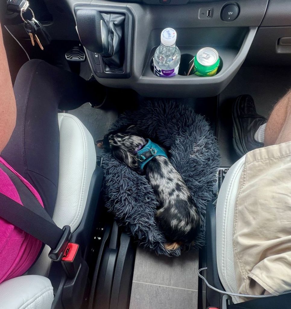 We tried to heed my sister’s guidance to try it for one night before buying everything at the camp store! The challenge is working out what is essential, valuable for comfort, important for safety, or won’t suit your camping style. While I checked out all the equipment, Janet jumped on her sewing machine and made quilts. We tried to limit our daily Amazon purchases, making do with some items from home. Saydee quickly warmed to it, probably because of the proximity to her humans!