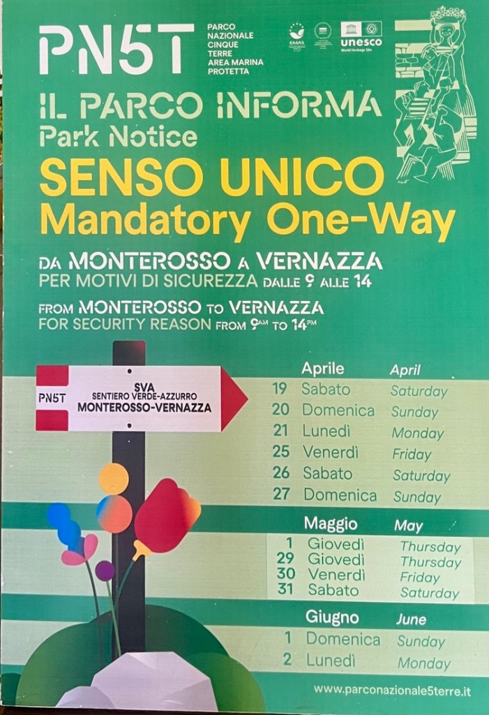 Our original plan had been to walk TO Monterosso but this sign indicated there was a one way system. It was a hint that there were going to be lots of people!
