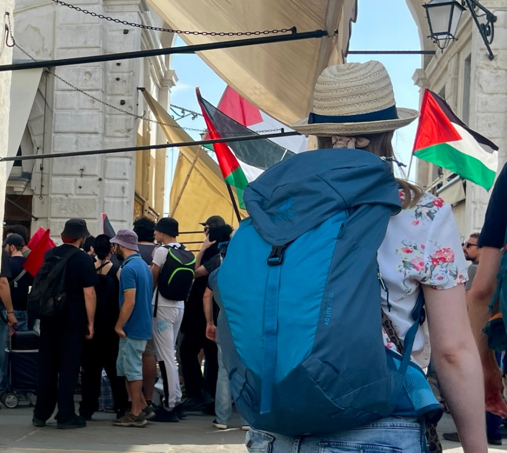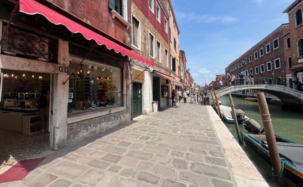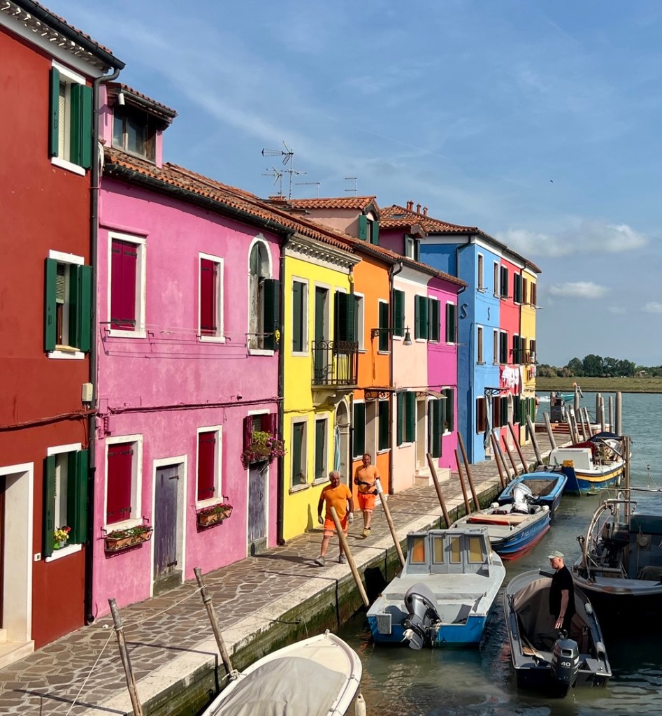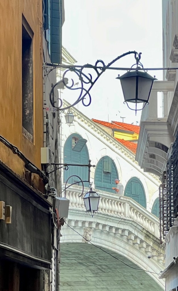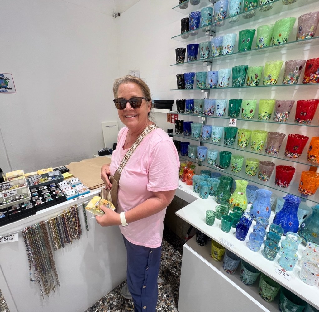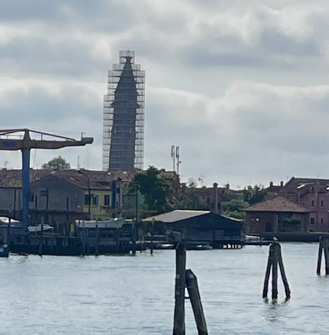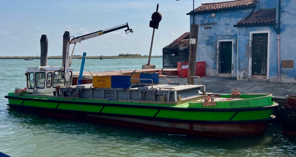 It was fun walking through the quiet Venice streets in the morning with views like this of Rialto Bridge.Even though the bell tower of Burano’s Saint Martin church was in scaffolding, we could detect the lean from Mazzorbo.The Venissa Estate on Mazzorbo has recreated a vineyard using the traditional Dorona grape.Burano’s houses had pretty colors.A trash boat.An ambulance.We found the traditional food that was on Janet’s list and enjoyed eating it!We watched the lace shops open and Janet enjoyed browsing some fine creations.Bailey enjoyed the shopping on Burano.This bridge on Torcello is one of only two in Venice that do not have sides. Most bridges originally did not have sides with them being added later.The Basilica of Santa Maria Assunta was founded on Torcello in 639 with the current building from 1008.We were the only passengers on the boat back to Burano from Torcello, and our boat to Murano was quiet.On Murano, we noticed a glass oven. After watching for a while, we were told it cost for a demonstration. We had all seen glass blowing before so we’re happy to leave.Glass shaping.The Main Street along the canal had lots of glass shops. Crowds came in waves as boats arrived.Janet enjoyed shopping the pretty colors.Murano was independent before it became a part of Venice. The lion on the top of this pillar represents Venice though you can see the outline of a cockerel, Murano’s emblem, from protests against the Venice take over.As we passed through Rialto on the way back to our apartment, there were several squads of police in riot gear and then we passed this small pro-Palestine protest on the top of Rialto Bridge. I snapped this picture as we walked by quickly without stopping. We were happy to get away from it all!