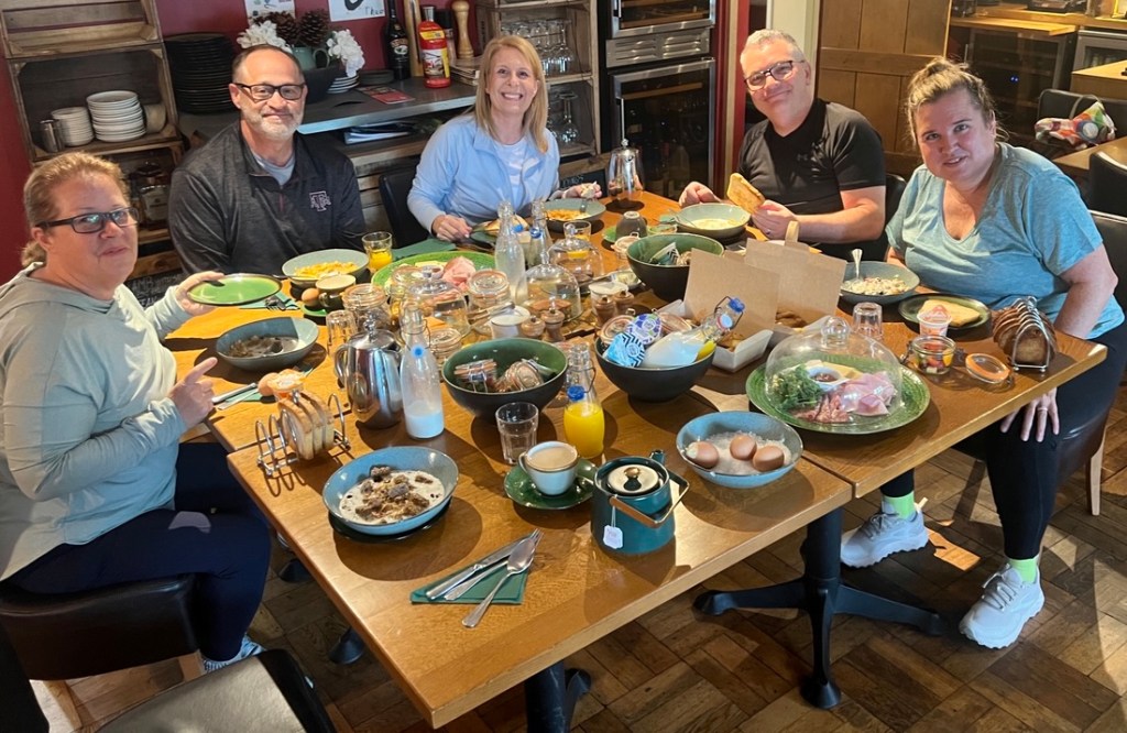 Breakfast was an impressive spread, unlike anything we’ve seen before at other B&B’s. We were encouraged to take leftovers with us which allowed us to have an enjoyable lunch later, sitting on a log in the woods, where we were visited by well behaved dogs that passed by on their walk.