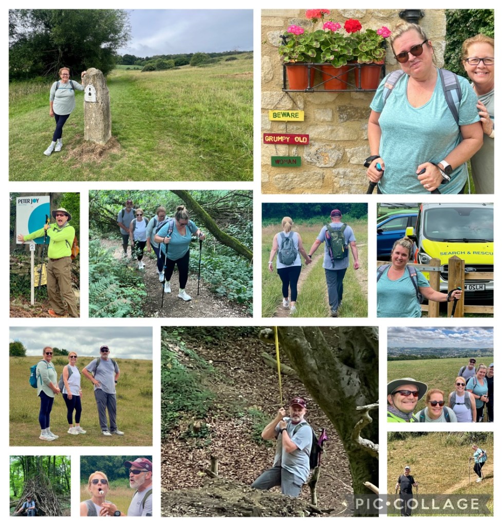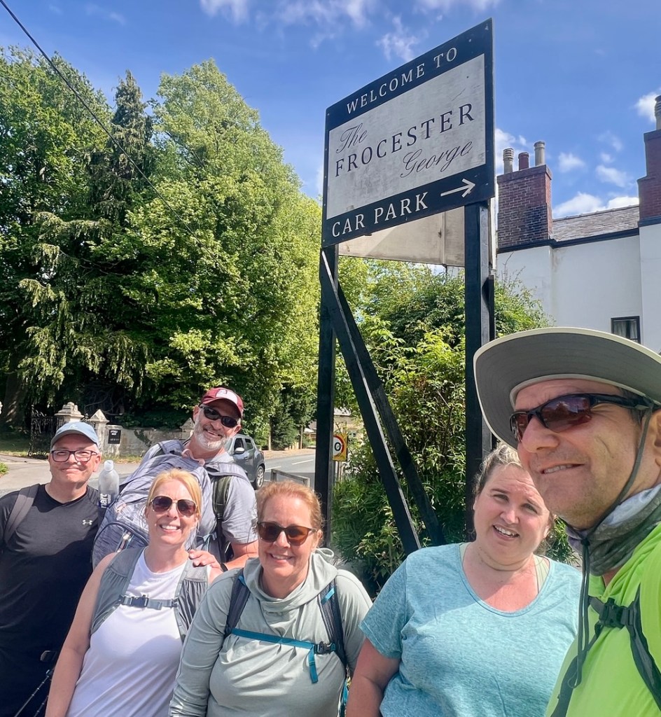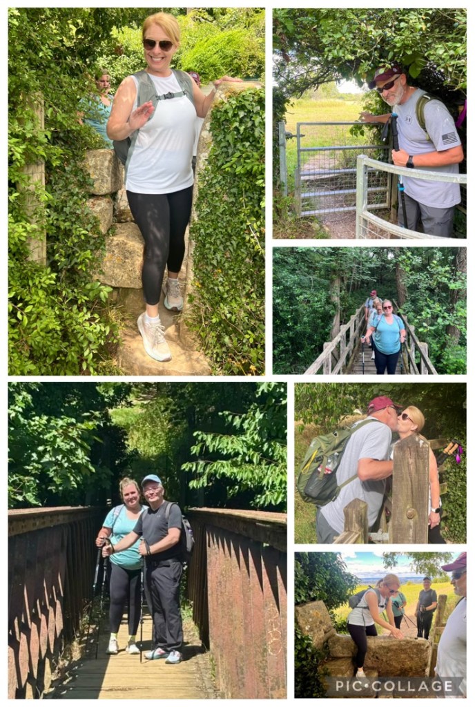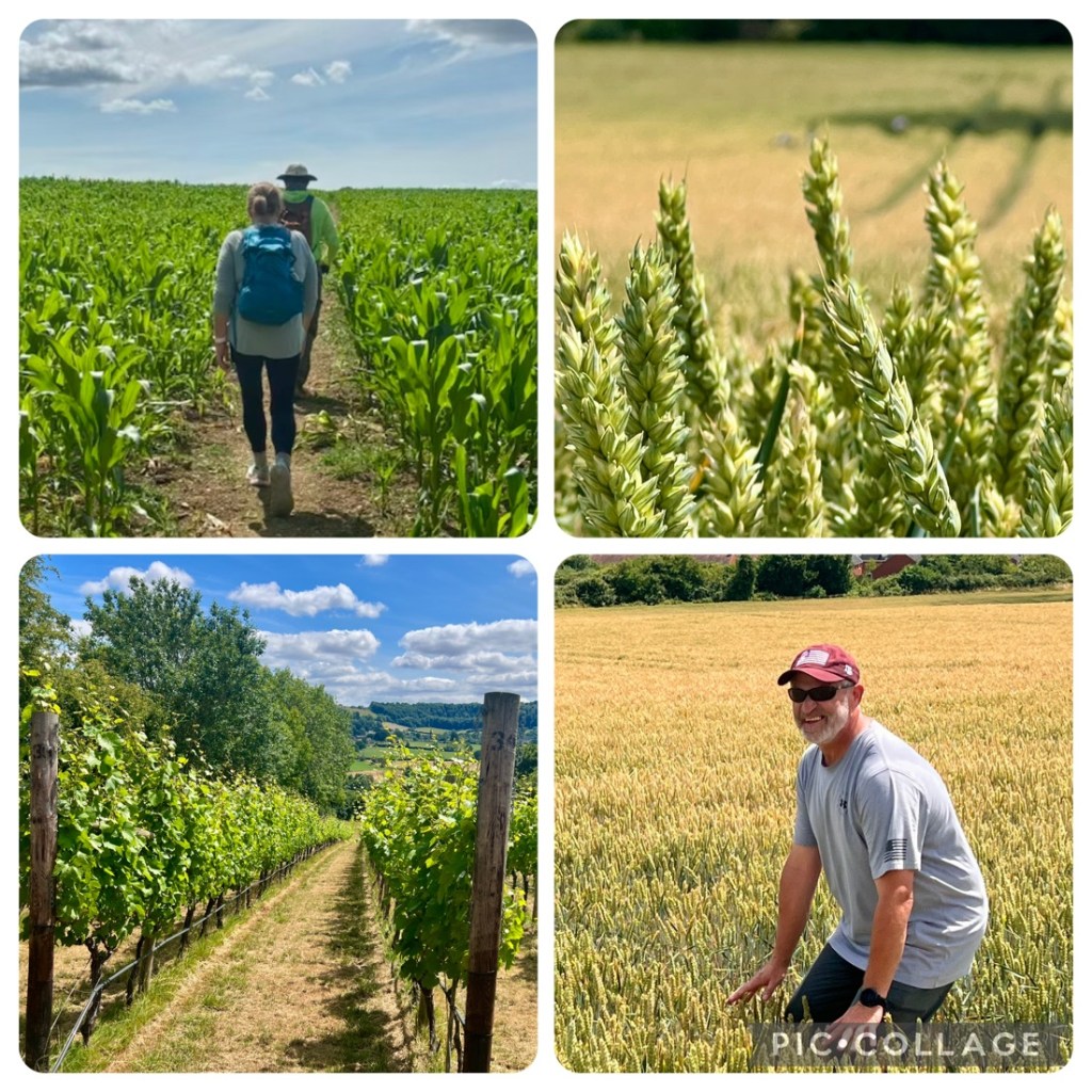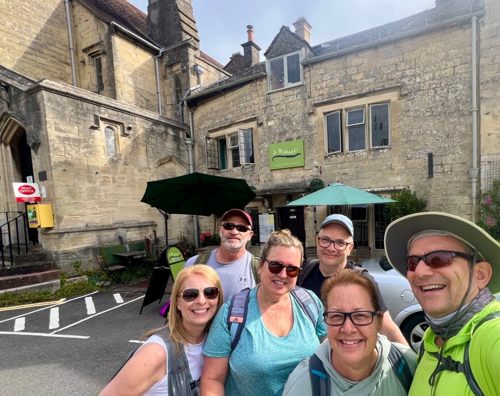 A great first day’s hike of about 11 miles from Painswick to Frocester climbing about 1400 ft in about 6.5 hours. The day’s challenge was the 80 degF (27 degC) but we persevered and loved the clear views off the edge of the escarpment, the peacefulness of the woodlands, and the fun of spending time together.