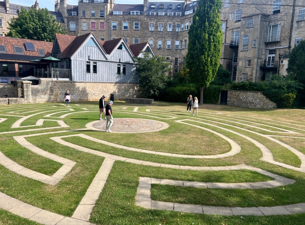 Early morning at Bath Abbey, the end of the Cotswold Way, was nearly deserted in the morning. It was so peaceful watching businesses open, the Abbey welcoming early morning worshippers, and parents taking their kids to school.I persuaded Max to try Ribena and he approved. Ribena is a blackcurrant cordial, like a syrup, to which you add water. It was my treat drink when growing up.Several signs discouraged feeding the seagulls as it encouraged them. They steal food out of your hand! On the canal, we were very upset with one. More about Louie later 😞.We walked over Bath’s Pulteney Bridge, one of only four in the world that have shops on both sides, and enjoyed strolling along the river Avon.We had relaxing fun solving this maze.