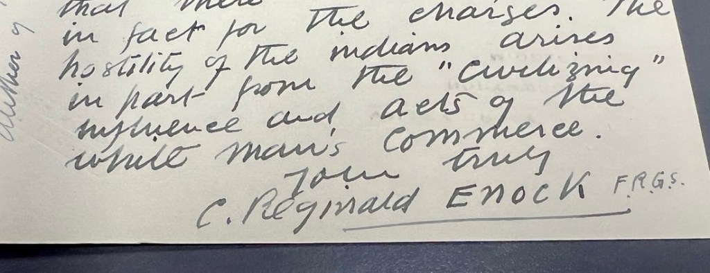 Our short review of Fawcett’s material had been fascinating and insightful. The correspondence revealed the mundane issues that faced his expeditions while communication was better than I expected. Much of Fawcett’s communication with the RGS when he was in the field went through his wife, Nina, who appears to be very supportive. It must have been difficult for her when he was away for months at a time, and I cannot imagine her challenges when Fawcett’s letters stopped in 1925 and he was declared lost in 1927 with their son.