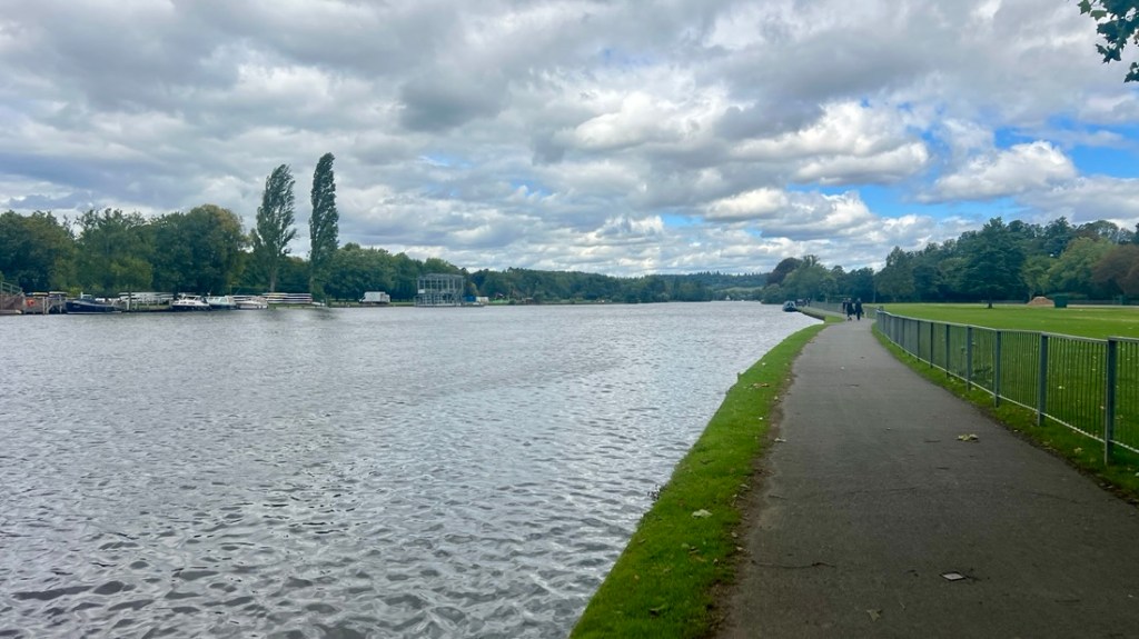 After the bridge, it was a fine walk along the river past where the rowing boats race: the Henley Reach.