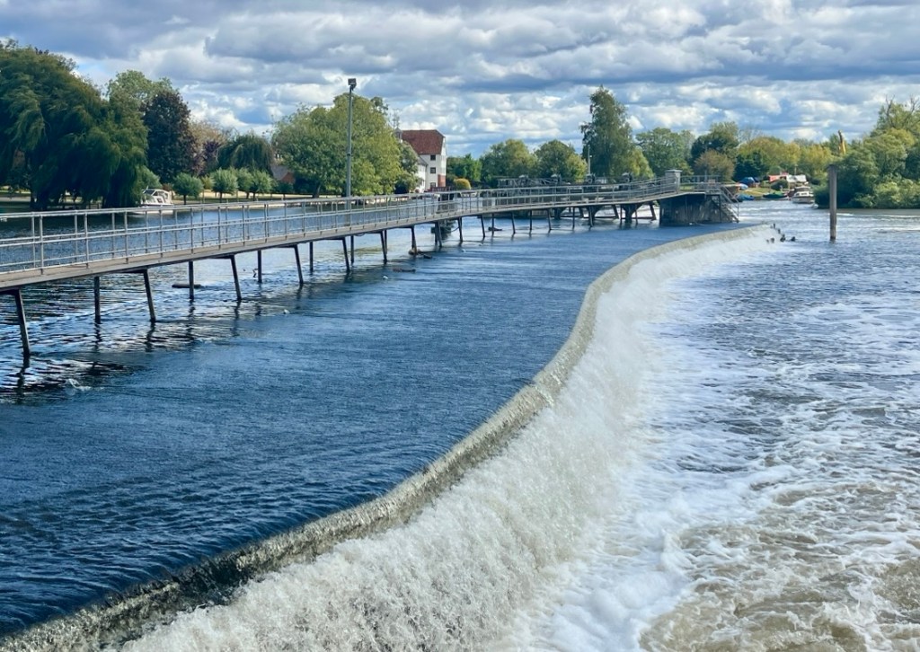 Hambledon Lock has a huge weir with a walkway over it. For the first time, I could feel the strength of the River Thames.