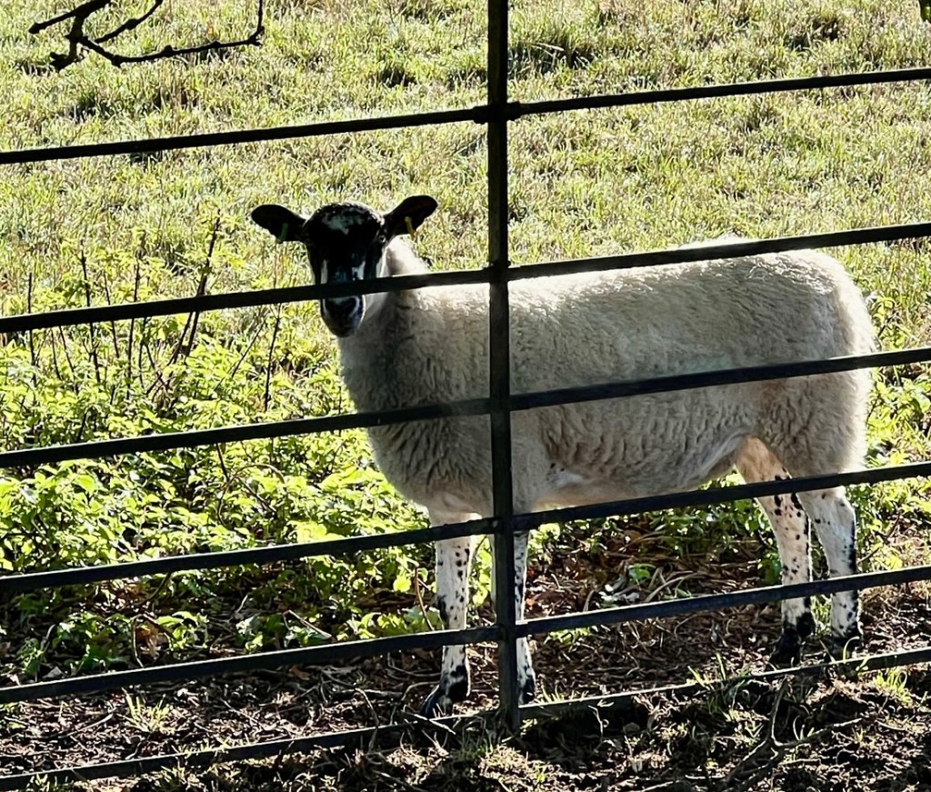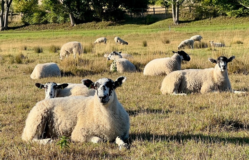 On the far side of the estate, the path took us through the middle of a sheep field. They were mellow, enjoying the warmth of the rising sun.