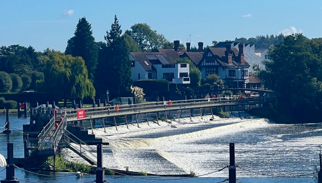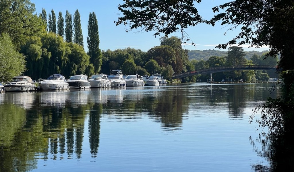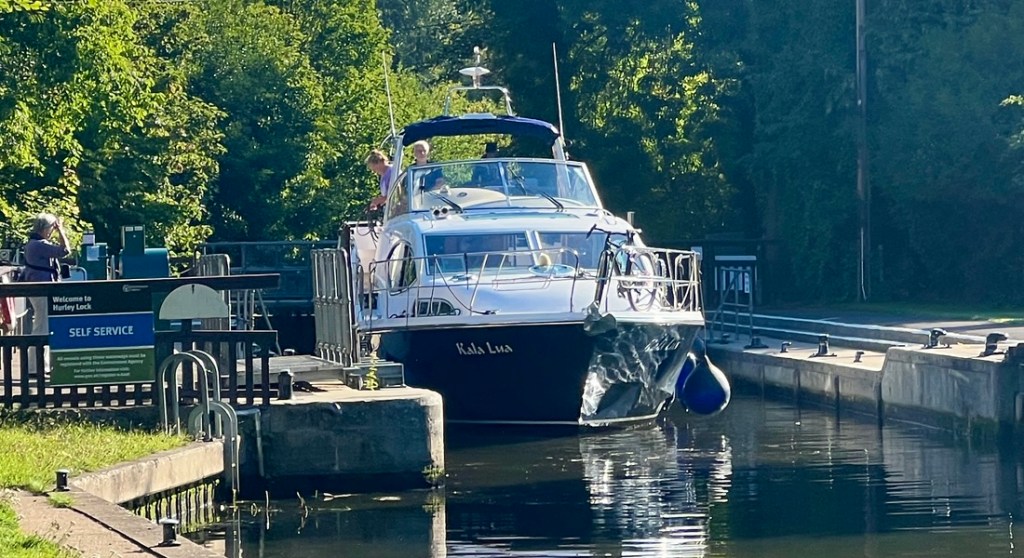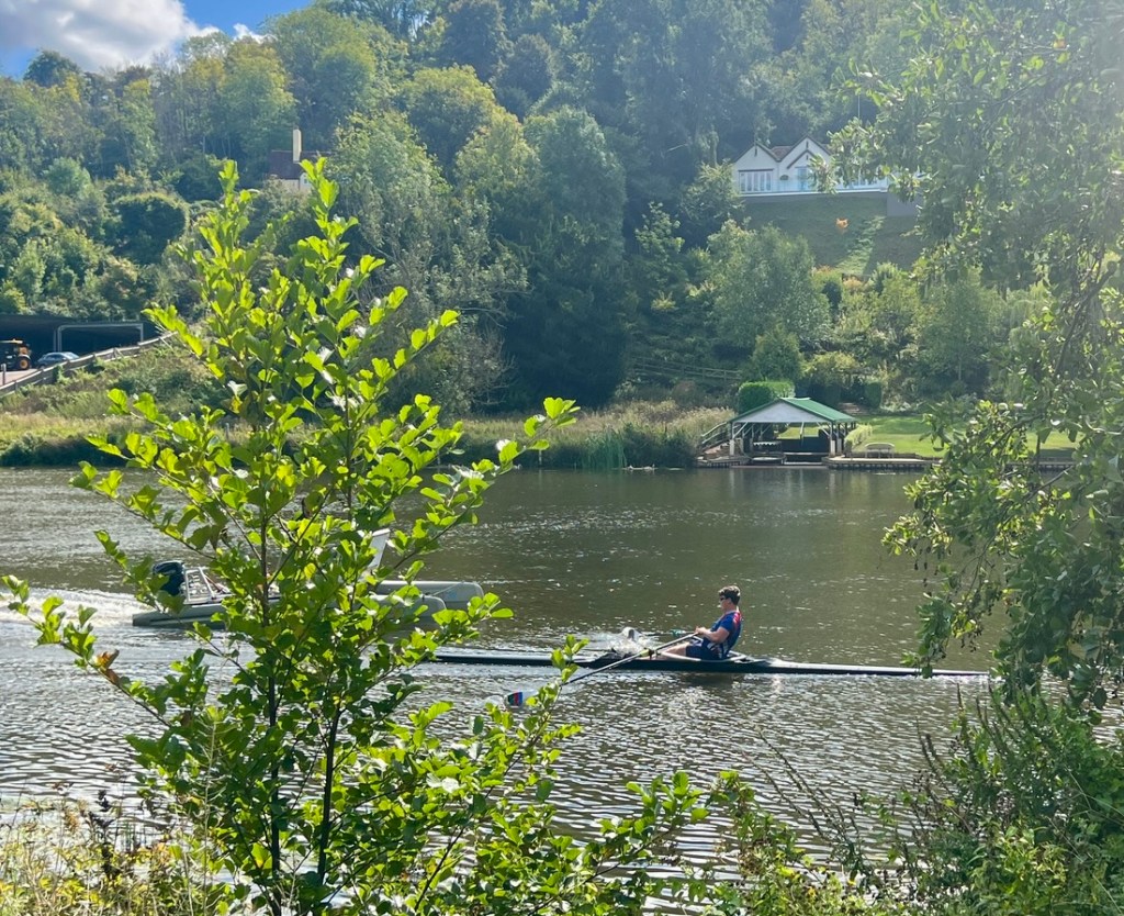 As we headed through Marlow, we passed more walkers and several joggers ran by. Schools used rowing as P.E.! We even saw a group of open water swimmers, wisely swimming downstream.