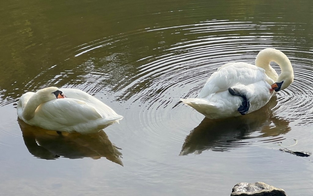 A green tunnel!Part of the Cliveden Estate on the other side of the river.Some cool reflections.Swans ensuring their coats stay clean and white.At times, the trail was close to the river. On this Saturday morning, several joggers ran past and fishermen were after a big catch.