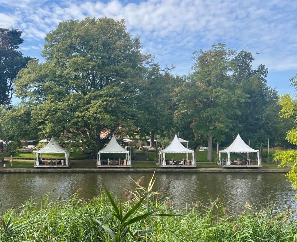 We spotted these private dining pods on the opposite shore at a club.We are still on the right path!A great spot for lunch and for watching the planes!