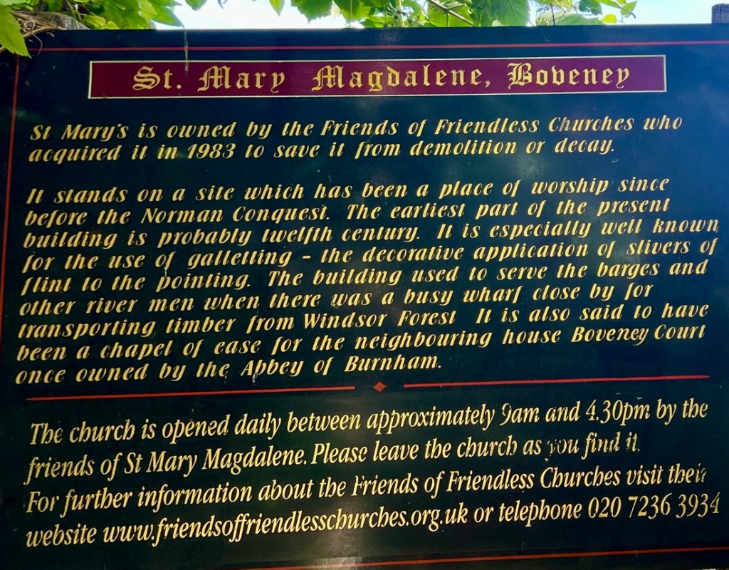 As we enjoyed our lunch, a passerby encouraged us to visit a church that was coming up, so we did. St Mary Magdalene of Boveney dated back to at least the twelfth century. I was struck by the interior’s simplicity, perhaps that way because it served river workers.