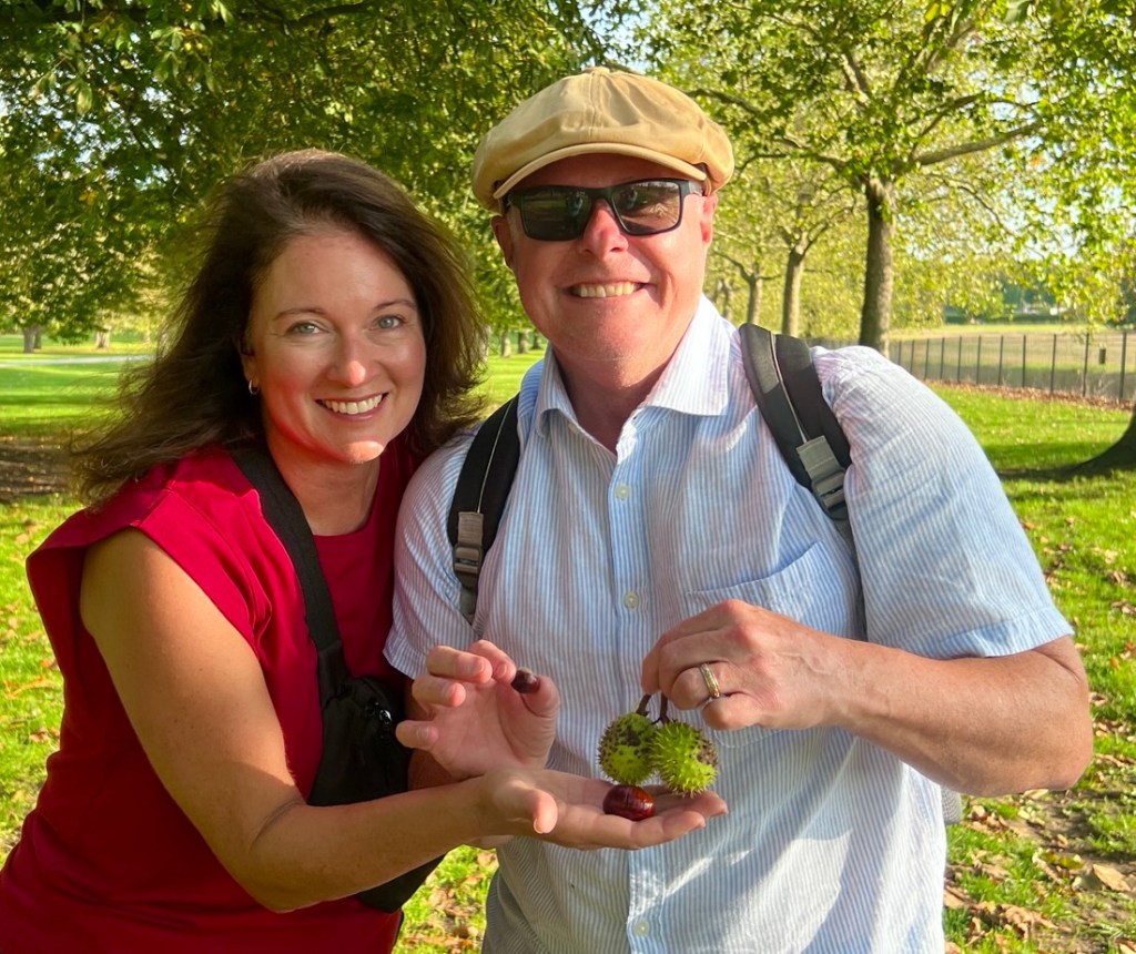 The best view of the castle is from the Long Walk. We introduced Keesha and Eric to conkers, also known as horse chestnuts.Aeroplanes passed overhead about every minute on their final approach to Heathrow.Eric’s eagle-eyes spotted these deer in the trees.What a fine Sunday morning stroll towards the statue of George III on his horse.